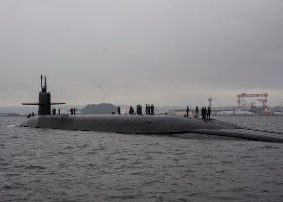 The Ohio-class guided-missile submarine USS Michigan (SSGN 727) arrived at Yokosuka, July 6, to perform a change of command and for a visit as part of its deployment to the Western Pacific.