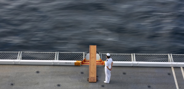Historically, burials at sea were used when ships lacked proper means to bury Sailors. Today, the ceremony is one of the highest honors paid to former service members in recognition of, and appreciation for, distinguished service to the United States.