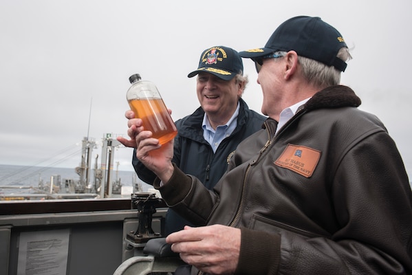 When asked about his first replenishment at sea using alternative fuel, Commanding Officer Cmdr. Walter C. Mainor said, "As a whole, these energy saving measures allow us to be on station longer and to do our job better. The Navy has been at the forefront of energy innovation [for generations]. From coal to steam to oil, this is just another measure that the Navy is taking on and leaning forward for energy innovation."