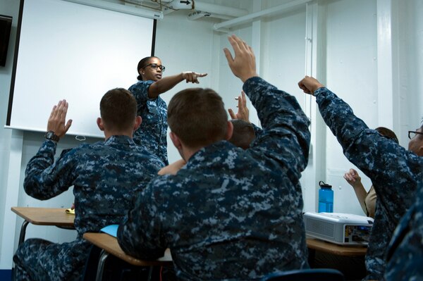 Brown is currently the instructor for America's command indoctrination, a weeklong course that introduces new arrivals to the command, yet her passion for teaching stems to a time before she joined the Navy.