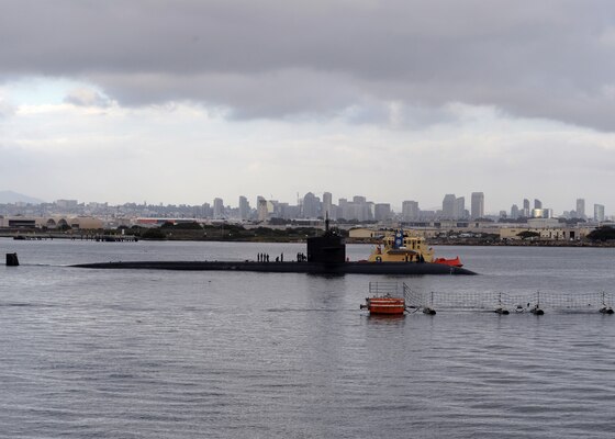The Los Angeles-class fast-attack submarine USS Albuquerque (SSN 706) arrived at the Puget Sound Naval Shipyard and Intermediate Maintenance Facility to commence the inactivation and decommissioning process, Oct. 28.