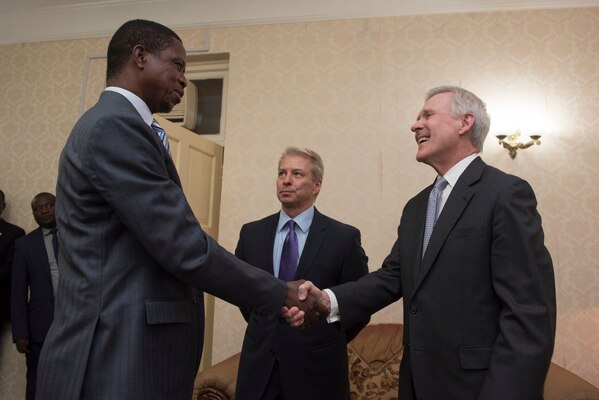 Secretary of the Navy (SECNAV) Ray Mabus met with Zambian president Edgar Lungu Nov. 4, during a partnership-building visit to the African nation's capital of Lusaka.