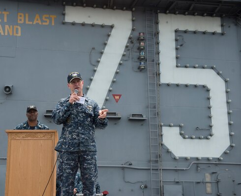 Capt. Ryan B. Scholl, Truman's commanding officer, said the advancement of each Sailor represents the "Give 'Em Hell" spirit aboard Truman.