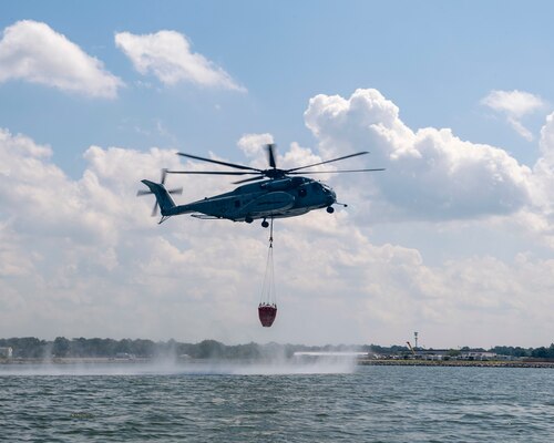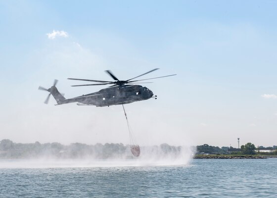 NORFOLK, Va. - Helicopter Mine Countermeasures Squadron (HM) 12 successfully tested, trained, and qualified their squadron and aircrew from three separate squadrons on the use of the Bambi Bucket to support aerial firefighting missions, if tasked, on the East Coast, Oct. 8. More Details More Details More Details More Details More Details More Details More Details More Details The MH-53E is the only rotary aircraft in the U.S. Navy with the capability to airlift a large-scale bucket of this size, which weighs 11,000 pounds when transporting water. “The East Coast now has the aerial firefighting capability to provide airborne fire suppression efforts when called upon,” said Lt. Cmdr. Jeffrey Spencer, HM-12 pilot. “This airborne firefighting training is similar to other mission areas to include lifting of heavy equipment, and cast and recovery in support of expeditionary forces.” Spencer added that the capability HM-12 brings would be a game changer if called upon. For aerial firefighting support, the bucket is capable of transporting 1,300 gallons. “Sailors from three different Helicopter Mine Countermeasures squadrons provided the necessary expertise to execute the required training in September,” said Spencer. “We qualified eight crews, and now have the capability to provide two aircraft with buckets for firefighting response efforts.” Master Chief Naval Air Crewman (Helicopters) Lance Howarth (NAC/AW/SW) emphasized the proper storage of these buckets more than 14 years ago enabled the squadron to start training. “With more than 14 years of time passed since actively using this capability on the East Coast prior to the disestablishment of Helicopter Combat Support Squadron 4, there were no airborne firefighting qualified pilots assigned on the East Coast,” said Howarth, who had civilian experience aerial fighting fires prior during a break in his naval service. “However, aircrewmen still serving in the community had experience flying these missions and we were able to leverage that experience.” HM-12 is tasked to support two primary missions, Airborne Mine Counter Measure (AMCM) mission and the Navy Vertical Onboard Delivery (VOD) mission to support expeditionary forces.