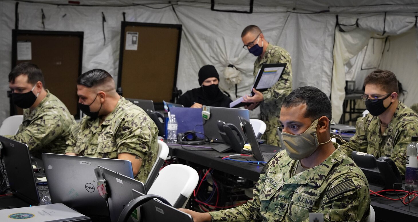 The operational infrastructure used came from the Navy Expeditionary Combat Command (NECC). The tent was outfitted with critical communications equipment necessary for voice communications, data sharing, unclassified and classified internet and the commercial Starlink, which works seamlessly with currently navy fielded systems.