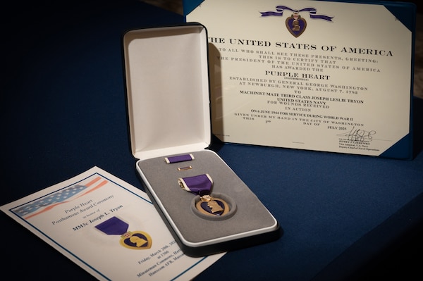 A U.S. Navy Sailor received the Purple Heart nearly 82 years after being injured during the World War II D-Day invasion June 6, 1944.