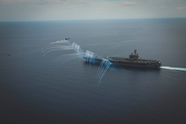 “Cmdr. Van Hoozer is leaving HSC-5 a better, more lethal fighting force," said Bodine. "I have no doubt Cmdr. Gustafson will further his predecessor's progress, and make the Dippers, Team Freedom, and the entire strike group a far more capable combat weapon system in the process. HSC-5 is in good hands." Van Hoozer graduated from the United States Naval Academy in 2003 where he earned a Bachelor of Science in Systems Engineering. He assumed command of HSC-5 in July 2021 and led the ‘Nightdippers’ of HSC-5 into their 2022 deployment with CVW-7 aboard the Nimitz-class aircraft carrier USS George H. W. Bush (CVN 77). “Working alongside the men and women of HSC-5 and supporting their development has been the most rewarding tour of my career,” said Van Hoozer. “The ‘Nightdippers’ are strong, resilient, and lethal. With Gus at the helm, I know they stand ready to rescue, protect, and deliver on any mission our nation asks.” Gustafson graduated with merit from the United States Naval Academy in 2005, where he earned a Bachelor of Science in Systems Engineering. He joined the ‘Nightdippers’ of HSC-5 in July 2021 as their executive officer. “Princess prepared us through a challenging workup cycle, and we wish him fair winds and following seas,” said Gustafson. “I’ve had the privilege of growing alongside our truly impressive team as we’ve coalesced into the combat-ready squadron we have today. I look forward to deepening our bond throughout what will certainly be an exciting and fulfilling deployment.” Carrier Strike Group (CSG) 10, George H.W. Bush CSG is on a scheduled deployment in the U.S. 6th Fleet area of operations, tasked with defending U.S., allied, and partner interests. CSG-10 is comprised of its flagship George H.W. Bush, Carrier Air Wing (CVW) 7, Destroyer Squadron (DESRON) 26, the Information Warfare Commander, and the Ticonderoga-class guided-missile cruiser USS Leyte Gulf (CG 55). The ships of DESRON 26 within CSG-10 are the Arleigh Burke-class guided-missile destroyers USS Nitze (DDG 94), USS Truxtun (DDG 103), USS Farragut (DDG 99), and USS Delbert D. Black (DDG 119). The squadrons of CVW-7 embarked aboard George H.W. Bush are the “Jolly Rogers” of Strike Fighter Squadron (VFA) 103, the “Pukin Dogs” of VFA-143, the “Bluetails” of Carrier Airborne Early Warning Squadron (VAW) 121, the “Nightdippers” of HSC-5, the “Sidewinders” of VFA-86, the “Nighthawks” of VFA-136, the “Patriots” of Electronic Attack Squadron (VAQ) 140, and the “Grandmasters” of Helicopter Maritime Strike Squadron (HSM) 46. Carrier Strike Group (CSG) 10, George H.W. Bush CSG, is on a scheduled deployment in the U.S. Naval Forces Europe-Africa area of operations, employed by U.S. Sixth Fleet to defend U.S., allied and partner interests.