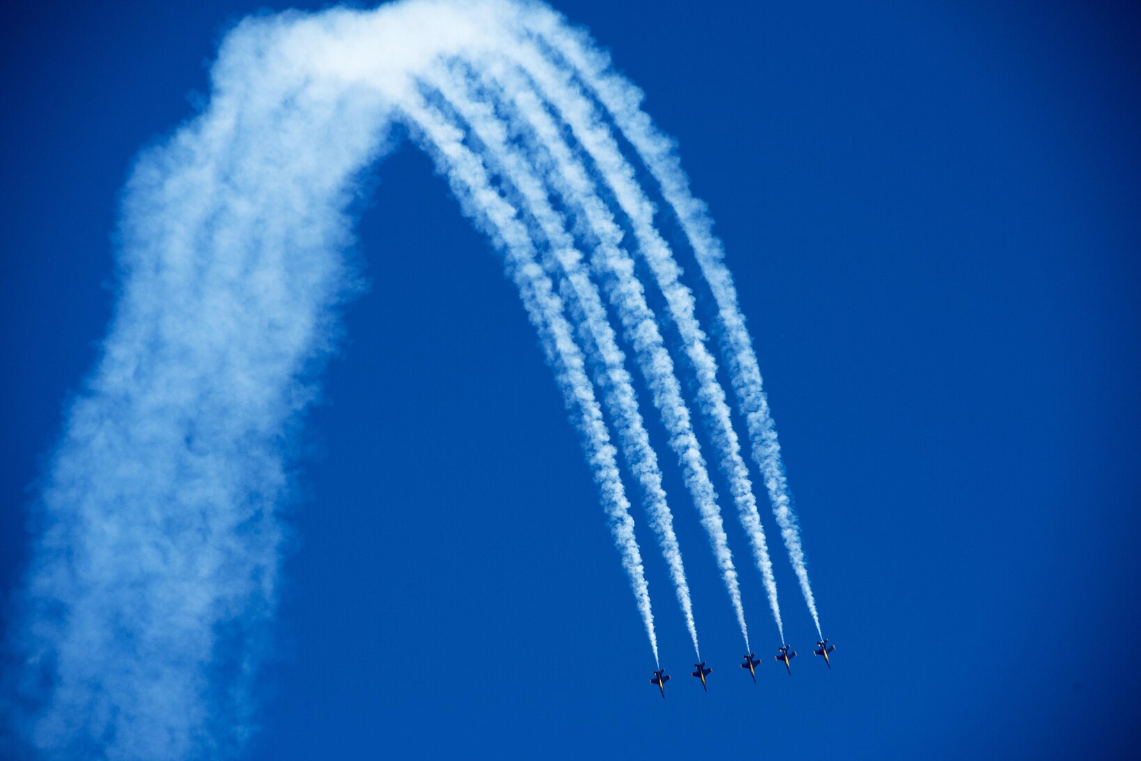 Members of the Blue Angels, the U.S. Navy flight demonstration squadron, perform during San Francisco Fleet Week 2015 in San Francisco, Oct. 10, 2015. San Francisco Fleet Week, now in its 35th year, celebrates the naval tradition in the Bay Area and facilitates annual disaster preparedness training between the Navy, Marine Corps, Coast Guard and local first responders. U.S. Navy photo by Petty Officer 2nd Class Christopher Lindahl