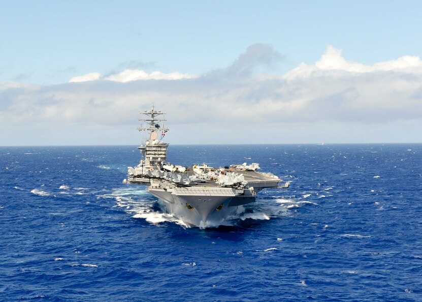 120718-N-RC246-242 PACIFIC OCEAN (July 18, 2012) The aircraft carrier USS Nimitz (CVN 68) participates in the Great Green Fleet demonstration portion of the Rim of the Pacific (RIMPAC) 2012 exercise. Nimitz took on 200,000 gallons of biofuel in preparation for the Great Green Fleet demonstration during Rim of the Pacific (RIMPAC) 2012. Twenty-two nations, more than 40 ships and submarines, more than 200 aircraft and 25,000 personnel are participating in RIMPAC exercise from June 29 to Aug. 3, in and around the Hawaiian Islands. The world's largest international maritime exercise, RIMPAC provides a unique training opportunity that helps participants foster and sustain the cooperative relationships that are critical to ensuring the safety of sea lanes and security on the world's oceans. RIMPAC 2012 is the 23rd exercise in the series that began in 1971. (U.S. Navy photo by Mass Communication Specialist 3rd Class Ryan Mayes/Released)