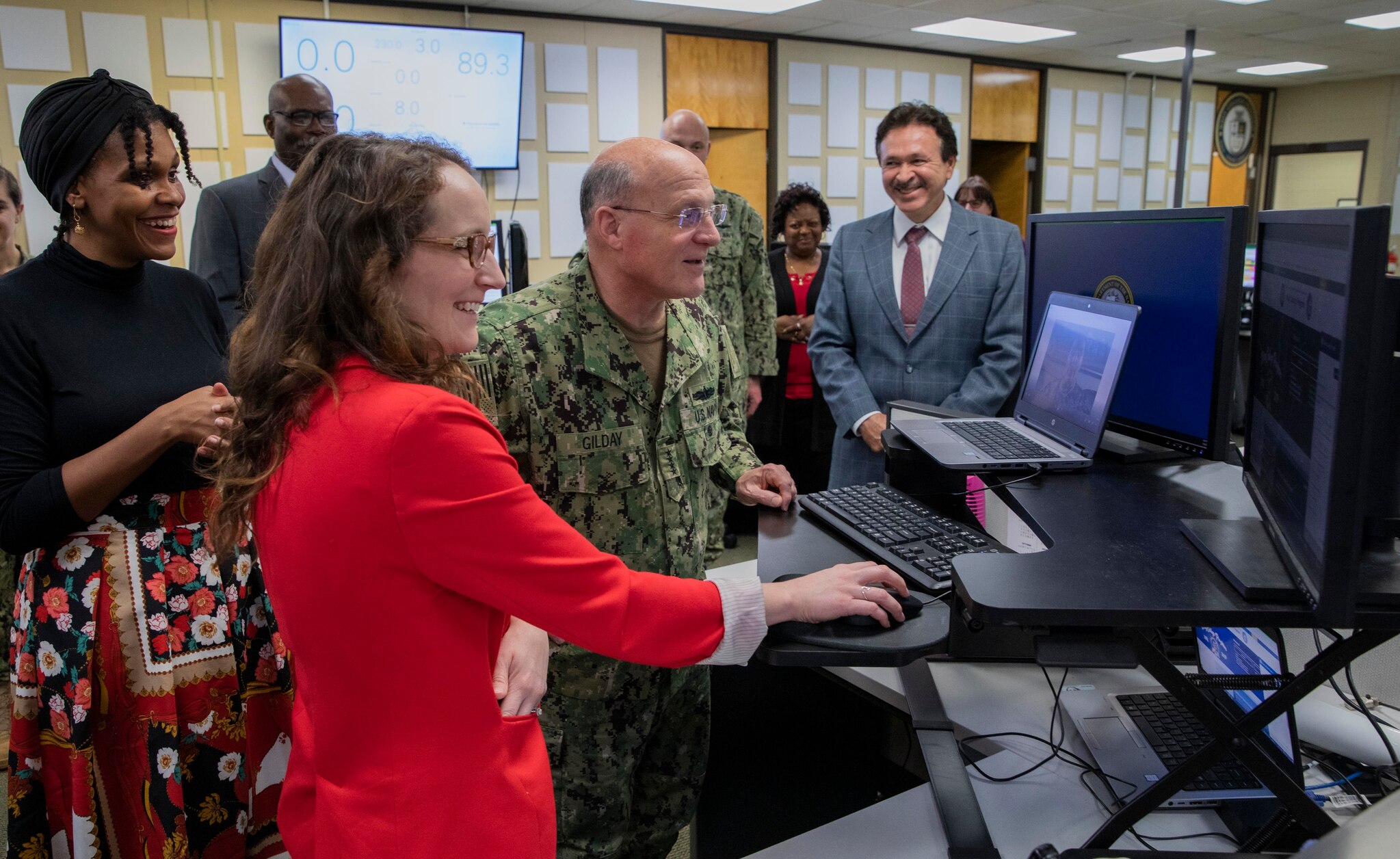 200129-N-TR763-0215 VIRGINIA BEACH, Va. (Jan. 29, 2020) - Chief of Naval Operations (CNO) Adm. Mike Gilday speaks to customer service representatives with the Navy College Program located on Naval Air Station Oceana Dam Neck-Annex. Gilday is visiting the Hampton Roads area to highlight the importance of warfighting and readiness to Sailors in the region. (U.S. Navy photo by Chief Mass Communication Specialist Nick Brown/Released)