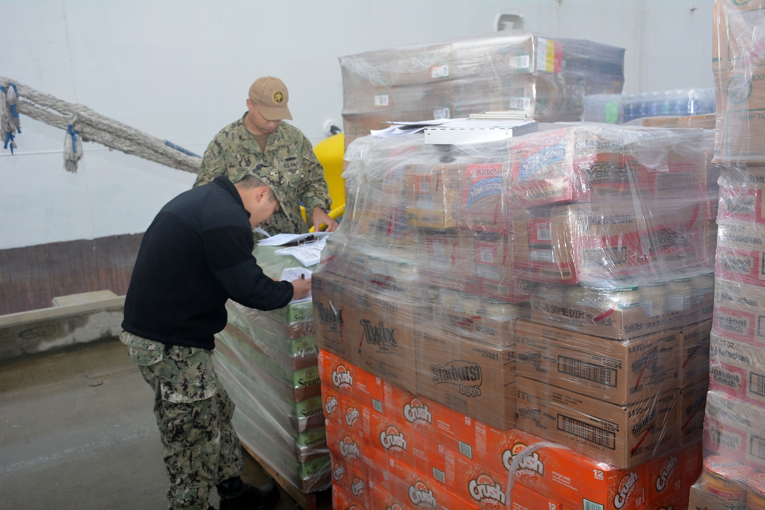 200320-N-WD133-038 SAN DIEGO (March 20, 2020) The Military Sealift Command hospital ship USNS Mercy (T-AH 19) takes on supplies, March 20, 2020, at Naval Base San Diego, Calif., in preparation to support the nation’s COVID-19 response efforts. Mercy will treat non-COVID-19 patients which will allow local health professionals to further focus on treating COVID-19 patients. (U.S. Navy photo by Sarah Burford/Released)