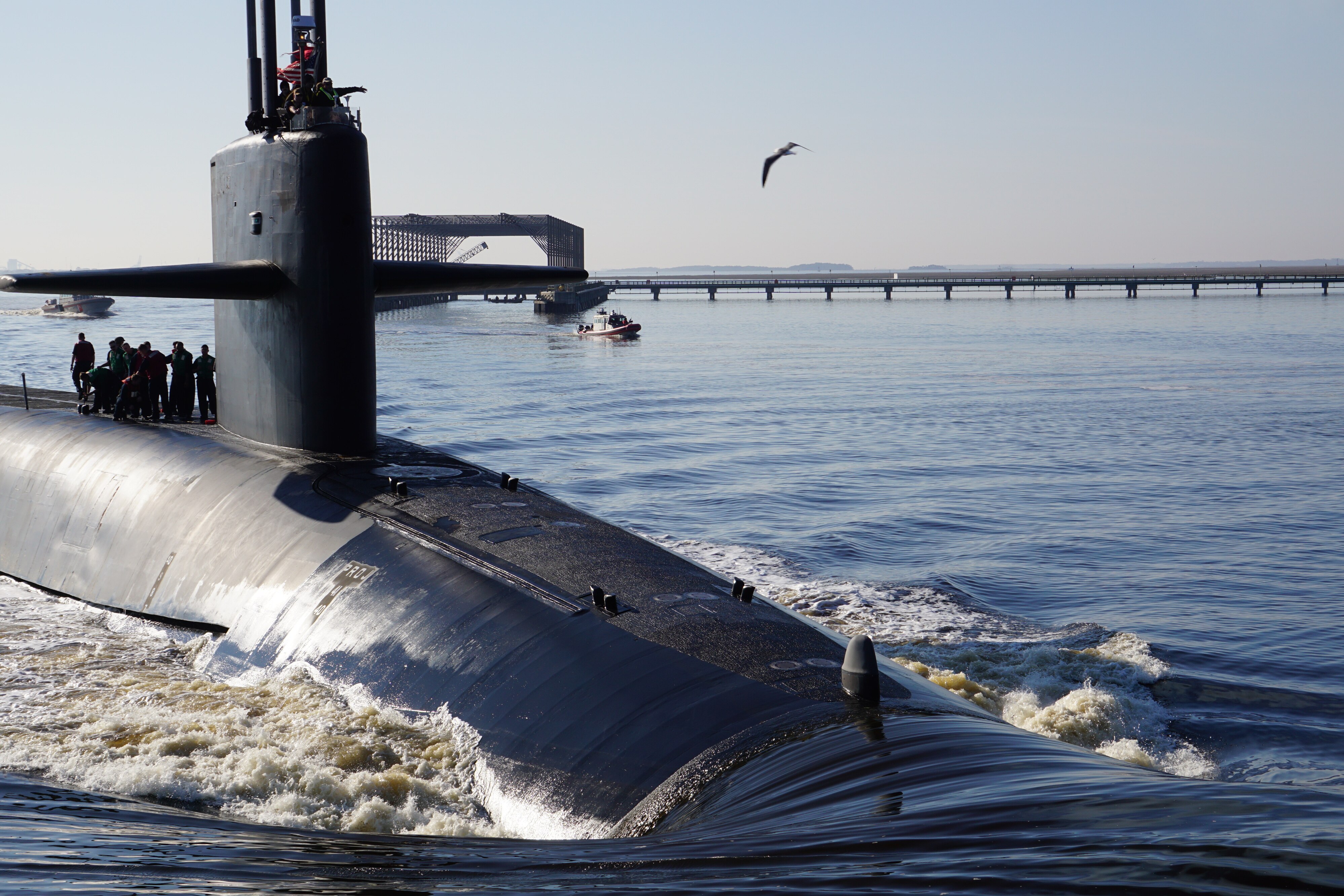 190205-N-KG413-0010 KINGS BAY, Ga. (Feb. 5, 2019) The Ohio-class ballistic-missile submarine USS Maryland (SSBN 738) Gold crew returns to homeport at Naval Submarine Base Kings Bay, Georgia, following a strategic deterrence patrol. The boat is one of five ballistic-missile submarines stationed at the base and is capable of carrying up to 20 submarine-launched ballistic missiles with multiple warheads. (U.S. Navy photo by Mass Communication Specialist 2nd Class Bryan Tomforde/Released)
