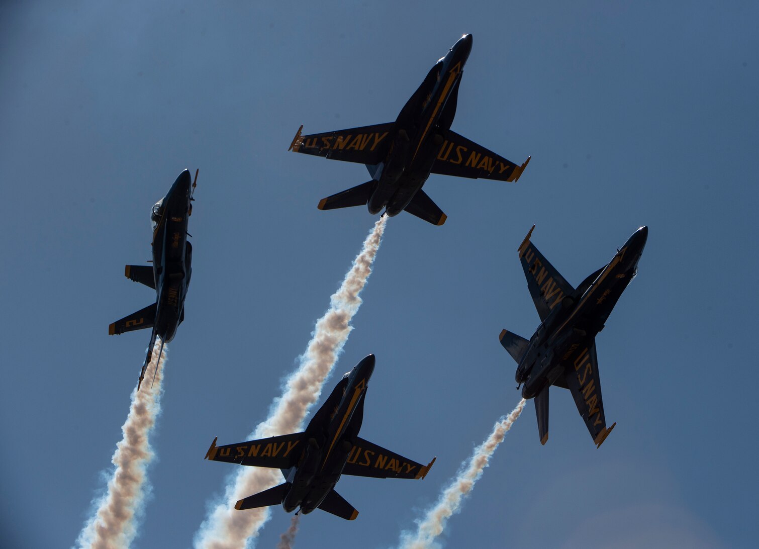 190316-N-UK306-1282 EL CENTRO, Calif. (March 16, 2019) The U.S. Navy flight demonstration squadron, the Blue Angels, perform the low break cross maneuver during a demonstration at the El Centro Airshow at Naval Air Facility El Centro, California. The team is scheduled to conduct 61 flight demonstrations at 32 locations across the country to showcase the pride and professionalism of the U.S. Navy and Marine Corps to the American public in 2019. (U.S. Navy photo by Mass Communication Specialist 2nd Class Timothy Schumaker/Released)