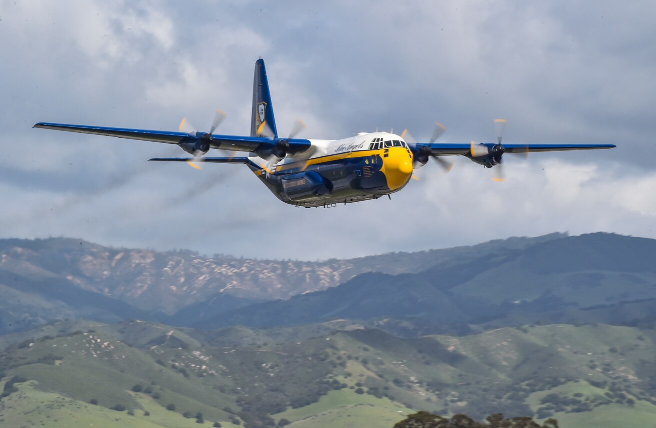 190323-N-UK306-1163 SALINAS, Calif. (March 23, 2019) The U.S. Navy flight demonstration squadron, the Blue Angels, C-130 transport aircraft, affectionately known as Fat Albert, flies during the California International Airshow at the Salinas Municipal Airport. The team is scheduled to conduct 61 flight demonstrations at 32 locations across the country to showcase the pride and professionalism of the U.S. Navy and Marine Corps to the American public in 2019. (U.S. Navy photo by Mass Communication Specialist 2nd Class Timothy Schumaker/Released)
