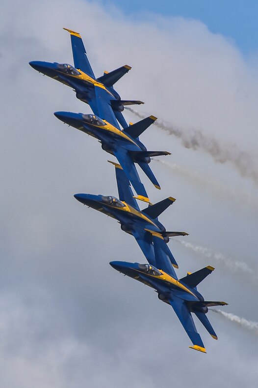 190323-N-UK306-1770 SALINAS, Calif. (March 23, 2019) The U.S. Navy flight demonstration squadron, the Blue Angels, diamond pilots fly in formation during a demonstration at the California International Airshow at the Salinas Municipal Airport. The team is scheduled to conduct 61 flight demonstrations at 32 locations across the country to showcase the pride and professionalism of the U.S. Navy and Marine Corps to the American public in 2019. (U.S. Navy photo by Mass Communication Specialist 2nd Class Timothy Schumaker/Released)