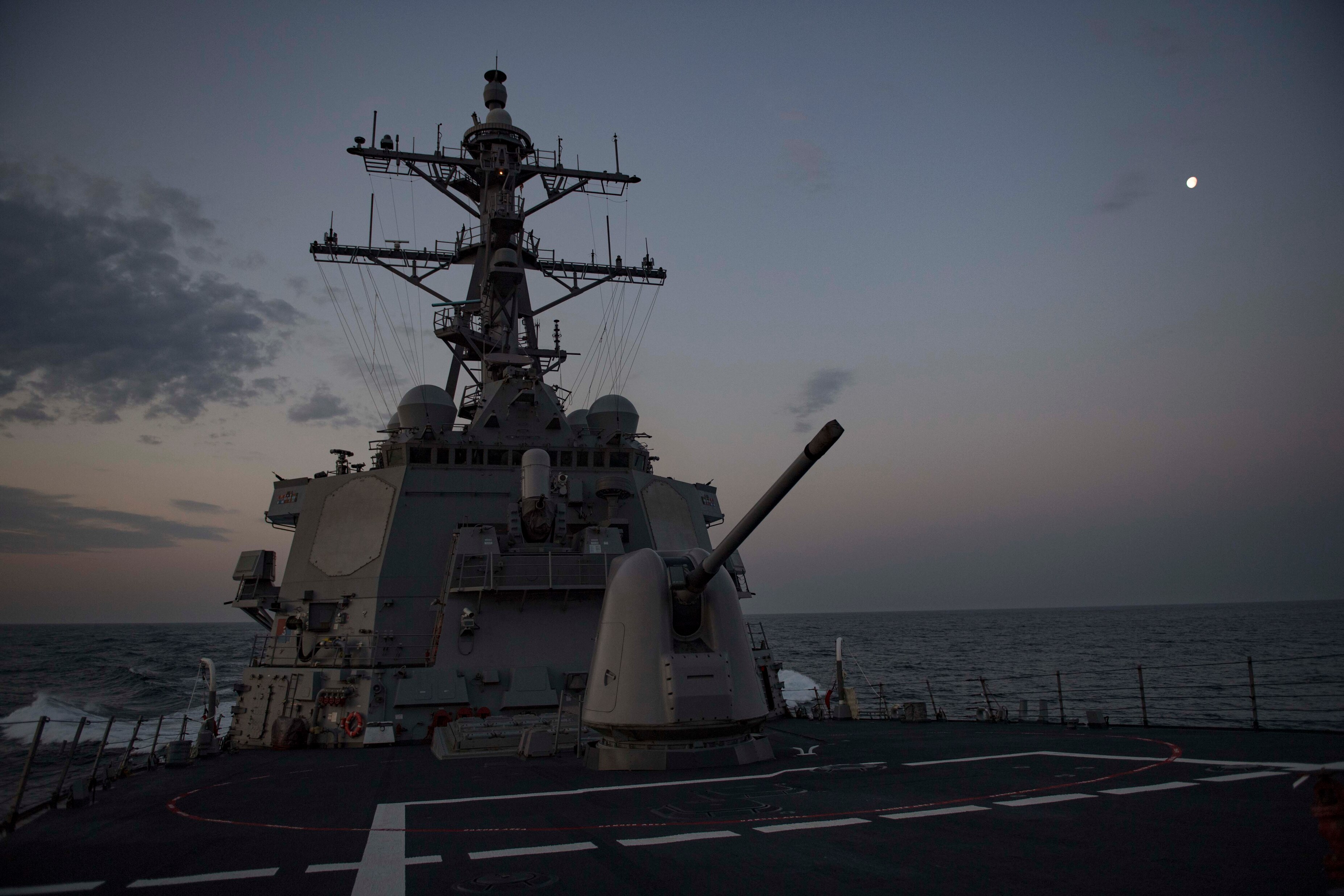 190324-N-TI693-0045 ATLANTIC OCEAN (March 24, 2019) - The Arleigh Burke-class guided-missile destroyer USS Carney (DDG 64) transit the Atlantic Ocean. Carney, forward-deployed to Rota, Spain, is on its sixth patrol in the U.S. 6th Fleet area of operations in support of regional allies and partners as well as U.S. national security interests in Europe and Africa. (U.S. Navy photo by Mass Communication Specialist 1st Class Fred Gray IV/Released)