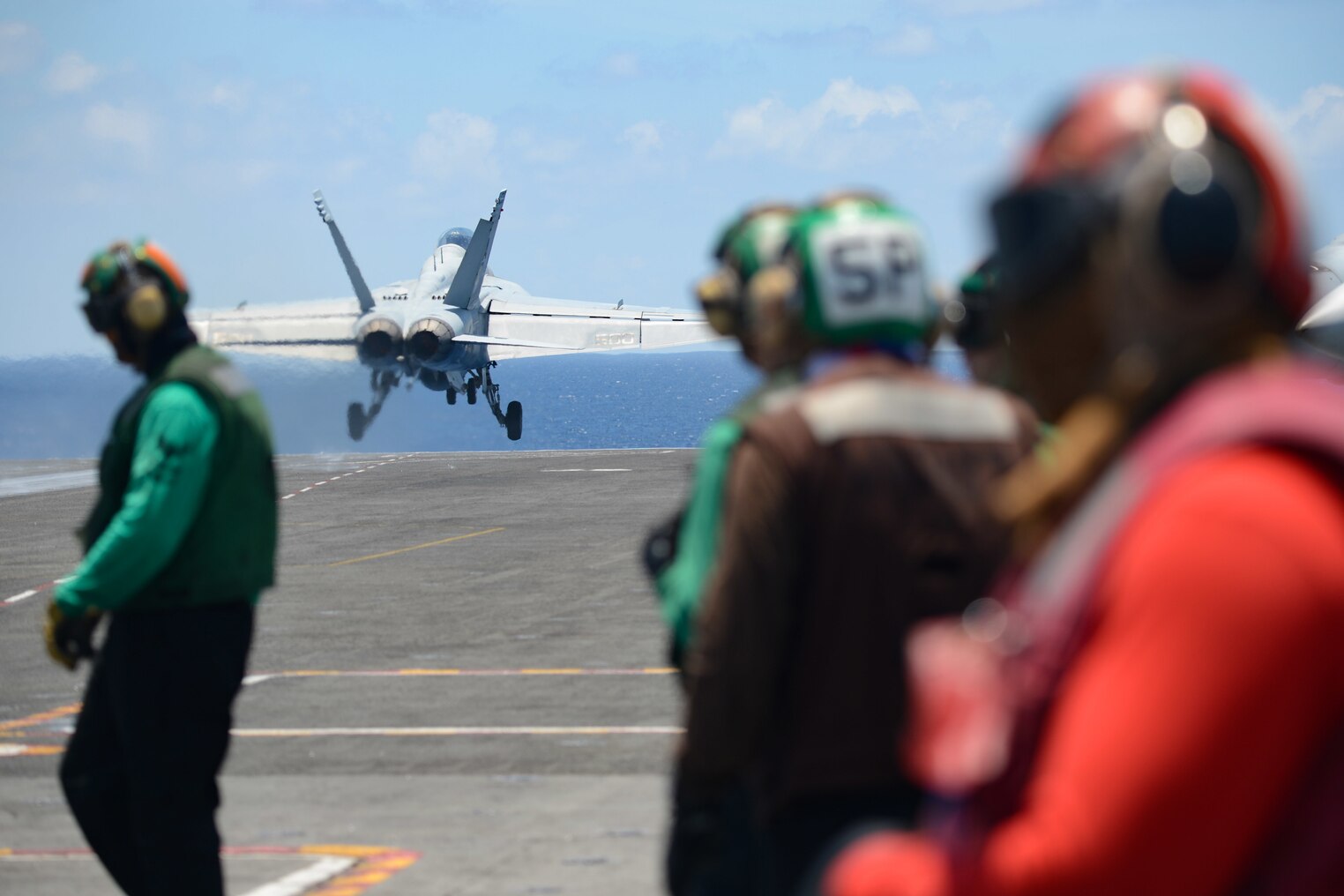 190711-N-LY620-0119 ATLANTIC OCEAN (July 11, 2019) Sailors safety check the catapult after launching an EA-18G Growler assigned to the Rooks of Electronic Attack Squadron (VAQ) 137 from the flight deck of the Nimitz-class aircraft carrier USS Harry S. Truman (CVN 75). Harry S. Truman is underway conducting composite training unit exercise with the Harry S. Truman Carrier Strike Group. (U.S. Navy photo by Mass Communication Specialist 3rd Class Benjamin Waddell/Released)