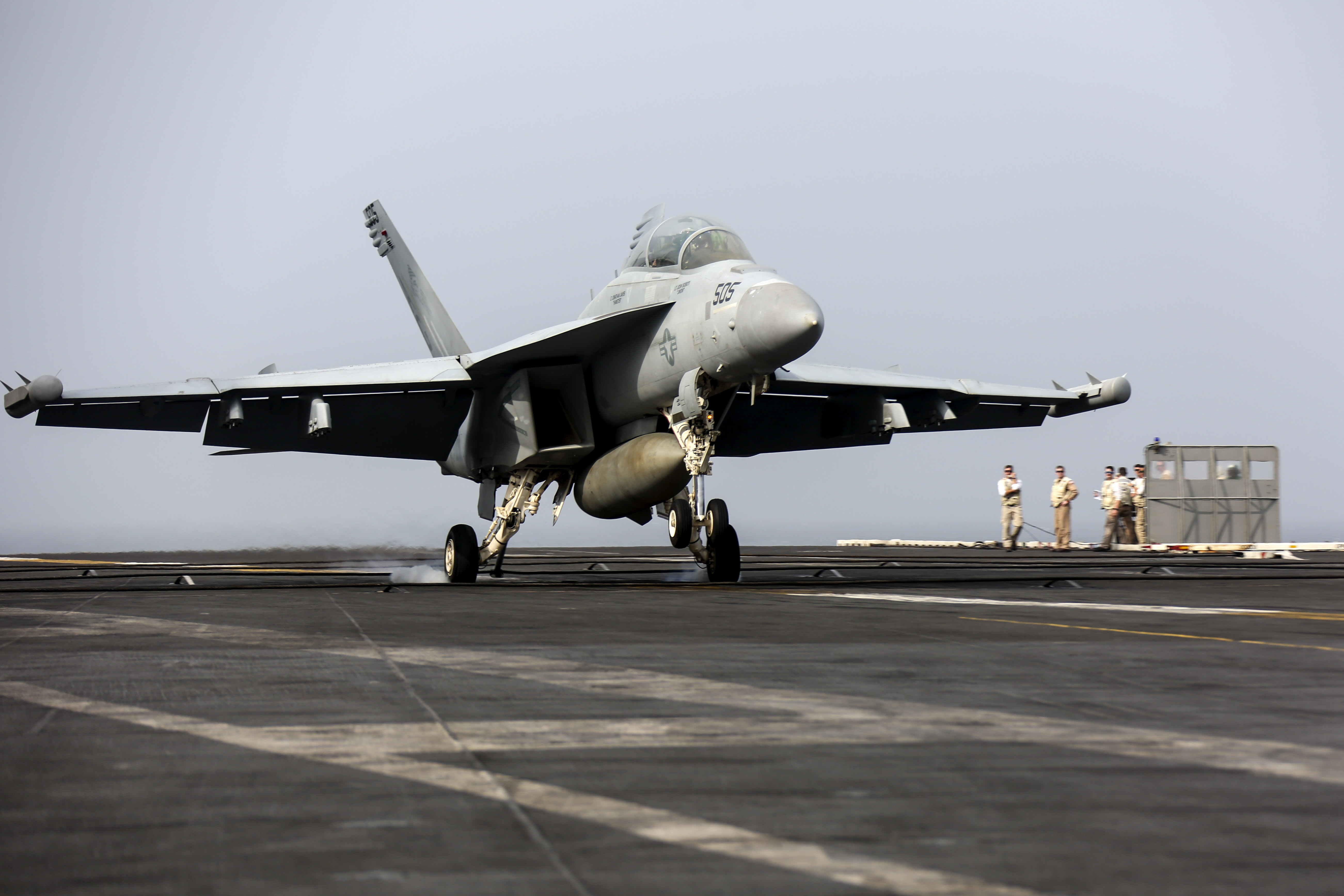 190801-N-FK070-1120 ARABIAN SEA (Aug. 1, 2019) An EA-18G Growler assigned to the "Patriots" of Electronic Attack Squadron (VAQ) 140 makes an arrested landing on the flight deck of the aircraft carrier USS Abraham Lincoln (CVN 72). Abraham Lincoln Carrier Strike Group is deployed to the U.S. 5th Fleet area of operations in support of naval operations to ensure maritime stability and security in the Central Region, connecting the Mediterranean and the Pacific through the western Indian Ocean and three strategic choke points. With Abraham Lincoln as the flagship, deployed strike group assets include staffs, ships and aircraft of Carrier Strike Group 12 (CSG 12), Destroyer Squadron 2 (DESRON 2), USS Leyte Gulf (CG 55) and Carrier Air Wing 7 (CVW 7). (U.S. Navy photo by Mass Communication Specialist 1st Class Brian M. Wilbur/Released)