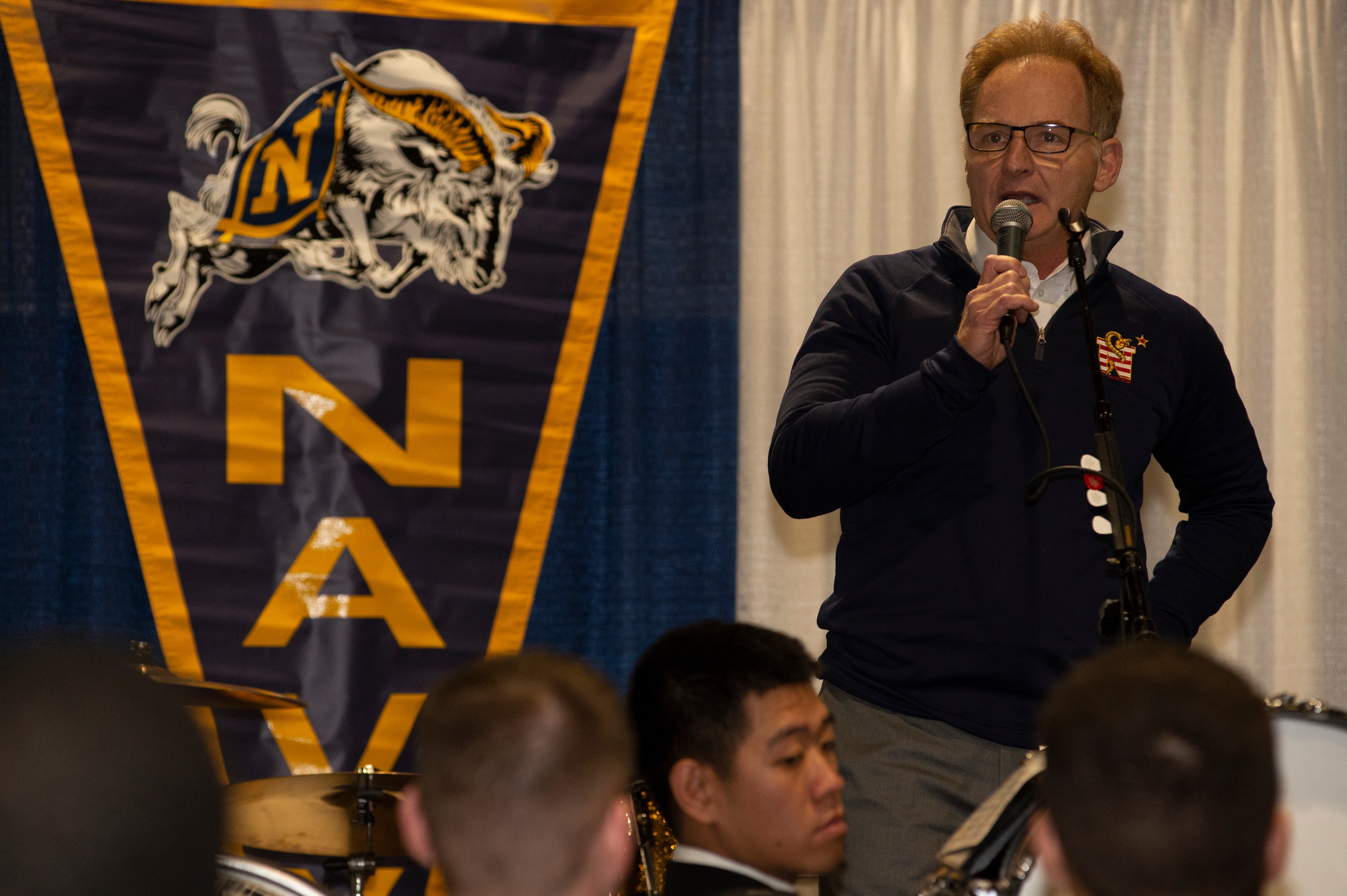 191231-N-FO865-0116 Memphis, Tenn. (Dec. 31, 2019) Acting Secretary of the Navy Thomas Modly delivers remarks to the U.s. Naval Academy Midshipmen during a pre-game luncheon at Liberty Bowl Memorial Stadium. The AutoZone Liberty Bowl is a college football game played on New Year’s Eve in Memphis, Tenn., and today the Navy Midshipmen play the Kansas State Wildcats. (U.S. Navy photo by Mass Communication Specialist 2nd Class Brandon Woods/Released)