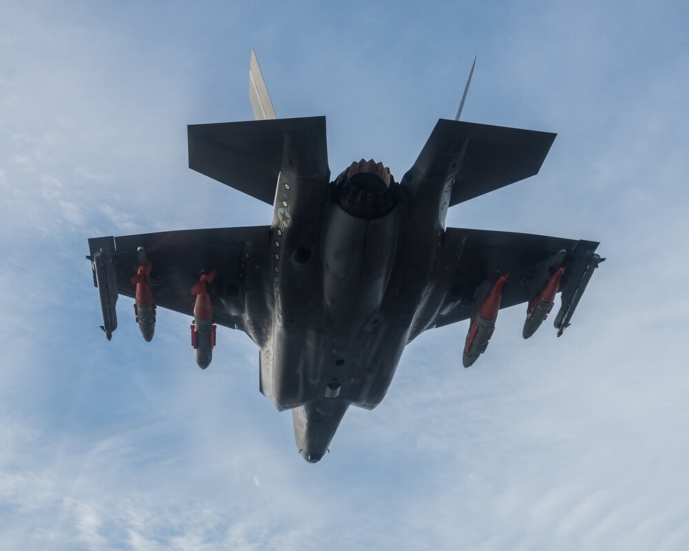 180201-N-ZB537-0005 PATUXENT RIVER, Md. (Feb. 1, 2018) Dan Levin, F-35 Pax River Integrated Test Force, pilots BF-3 on its 691st flight for a flutter and buffet test mission at Naval Air Station Patuxent River with external weapons. This flight, shown with external 2,000 pound and 1,000 pound GBUs and AIM-9x weapons, is one of the final flight tests for the F-35B in the system development and demonstration phase. (U.S. Navy photo by Dane Wiedmann/Released)
