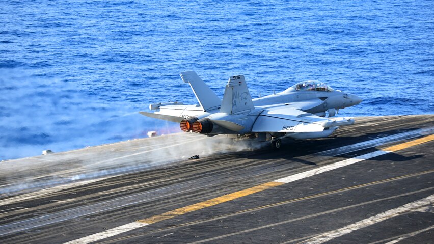 180410-N-NK192-3491 SOUTH CHINA SEA (April 10, 2018) An EA-18G Growler assigned to the Cougars of Electronic Attack Squadron (VAQ) 139 takes off from the flight deck of the aircraft carrier USS Theodore Roosevelt (CVN 71). Theodore Roosevelt is underway for a scheduled deployment in the U.S. 7th Fleet area of operations in support of maritime security operations and theater security cooperation efforts. (U.S. Navy photo by Mass Communication Specialist Seaman Michael Colemanberry/Released)