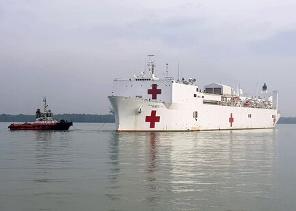 180416-N-OU129-002 PORT KELANG, Malayasia (April 16, 2016) The Military Sealift Command hospital ship USNS Mercy ((T-AH 19) arrives at Port Kelang, Malayasia, to support Pacific Partnership 2018 (PP18). PP18’s mission is to work collectively with host and partner nations to enhance regional interoperability and disaster response capabilities, increase stability and security in the region, and foster new and enduring friendships across the Indo-Pacific Region. Pacific Partnership, now in its 13th iteration, is the largest annual multinational humanitarian assistance and disaster relief preparedness mission conducted in the Indo-Pacific. (U.S. Navy photo by Mass Communication Specialist 2nd Class Joshua Fulton/Released)