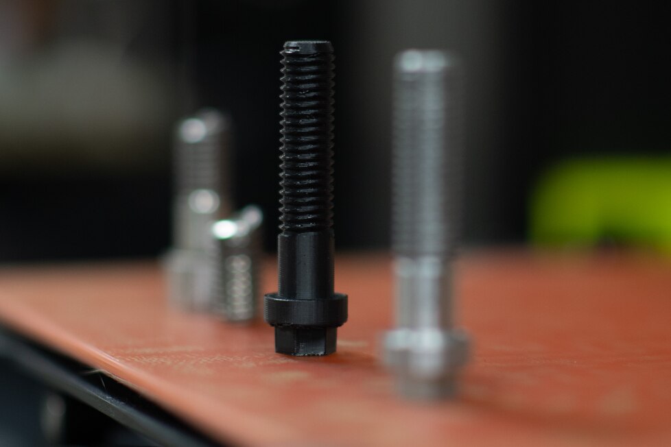 180901-N-OM854-0016 PACIFIC OCEAN (Sept. 1, 2018) A 3D printed bolt, a broken bolt, and the final manufactured bolt for a hangar bay door assembly sit from left to right on a 3D printer aboard the Nimitz-class aircraft carrier USS John C. Stennis (CVN 74). John C. Stennis is underway conducting routine operations in the U.S. 3rd Fleet area of operations. (U.S. Navy photo by Mass Communication Specialist 3rd Class Grant G. Grady/Released)