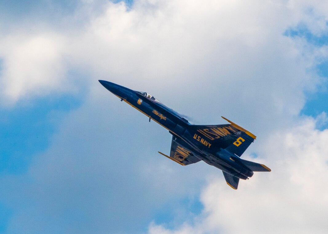180901-N-RJ834-417 CLEVELAND (Sept. 1, 2018) The U.S. Navy flight demonstration squadron, the Blue Angels, perform during the Cleveland Air Show at Burke Lakefront Airport during Cleveland Navy Week. The Navy Office of Community Outreach uses the Navy Week program to bring Navy Sailors, equipment and displays to approximately 14 American cities each year for a week-long schedule of outreach engagements designed for Americans to experience firsthand how the U.S. Navy is the Navy the nation needs. (U.S. Navy photo by Mass Communication Specialist 2nd Class Tamara Vaughn/Released)