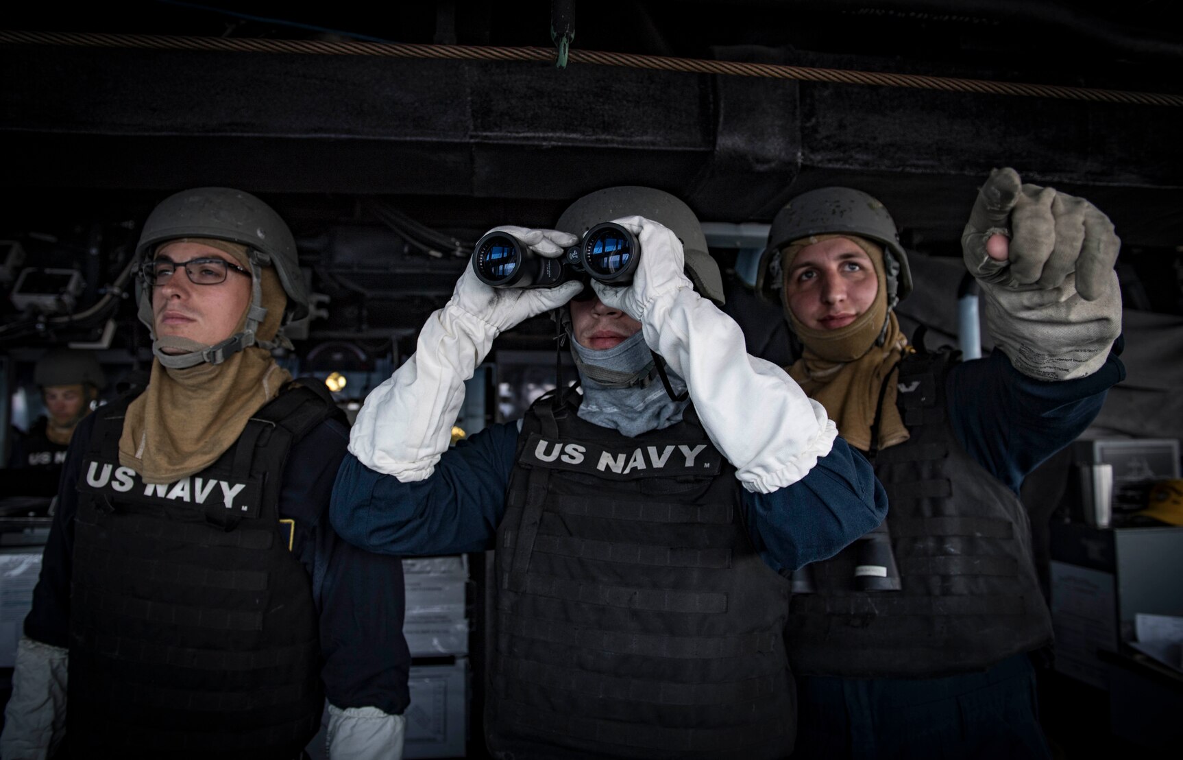 180917-N-UY653-030 MEDITERRANEAN SEA (Sept. 17, 2018) Sailors stand watch during a general quarters drill aboard the Arleigh Burke-class guided-missile destroyer USS Carney (DDG 64), Sept. 17, 2018. Carney, forward-deployed to Rota, Spain, is on its fifth patrol in the U.S. 6th Fleet area of operations in support of regional allies and partners as well as U.S. national security interests in Europe and Africa. (U.S. Navy photo by Mass Communication Specialist 1st Class Ryan U. Kledzik/Released)