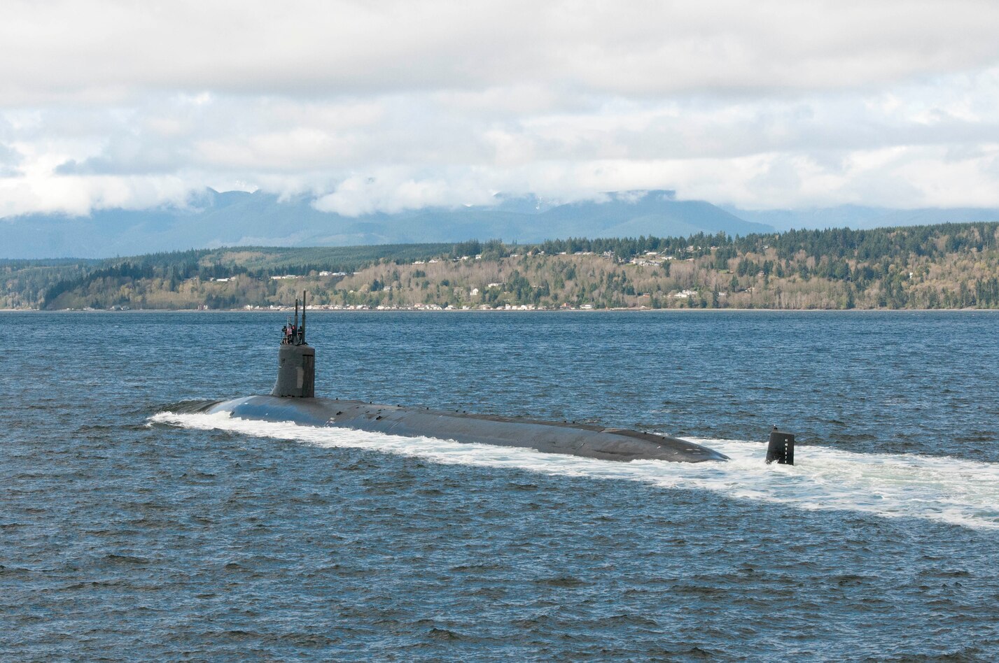 170414-N-TC277-267 PUGET SOUND, Wash. (April 14, 2017) The Seawolf-class fast-attack submarine USS Jimmy Carter (SSN 23) transits the Hood Canal as the boat returns home to Naval Base Kitsap-Bangor. Jimmy Carter is the last and most advanced of the Seawolf-class attack submarines, which are all homeported at Naval Base Kitsap. (U.S. Navy photo by Lt. Cmdr. Michael Smith/Released)