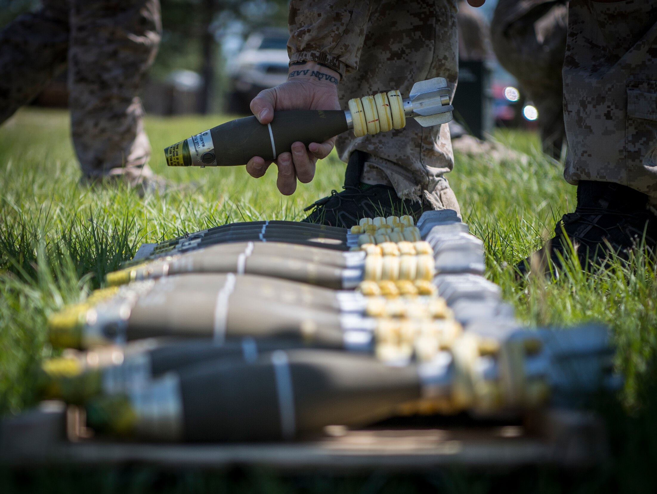 170505-N-HD510-0019 CAMP SHELBY, Miss. (May 5, 2017) An East Coast-based Navy SEAL stacks M888 60mm mortar rounds in preparation of indirect-fire training at Camp Shelby, Miss. during TRIDENT 17. TRIDENT 17 is naval special warfare’s premier joint training event that encompasses several special operations forces and conventional military participants, as well as partner nations and partner agencies to create realistic, combined-effort scenarios for operational units. (U.S. Navy photo by Mass Communication Specialist 2nd Class Scott Fenaroli/Released)