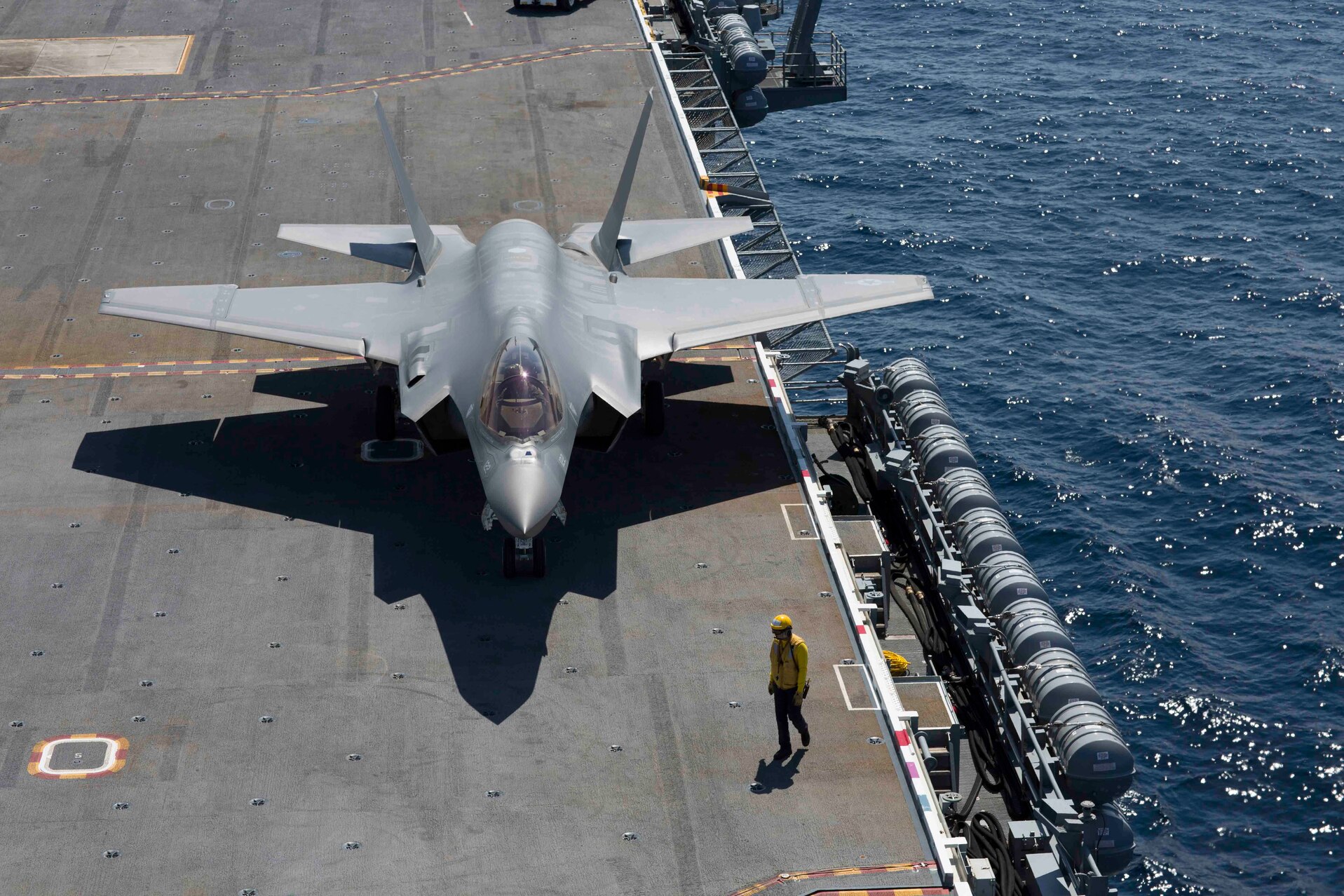170904-N-AD724-0089 ATLANTIC OCEAN (Sept. 4, 2017) An F-35C Lightning II assigned to the Grim Reapers of Strike Fighter Squadron (VFA) 101 taxis on the flight deck of the Nimitz-class aircraft carrier USS Abraham Lincoln (CVN 72). Abraham Lincoln is underway conducting training after successful completion of carrier incremental availability. (U.S. Navy photo by Mass Communication Specialist Seaman Shane Bryan/Released)