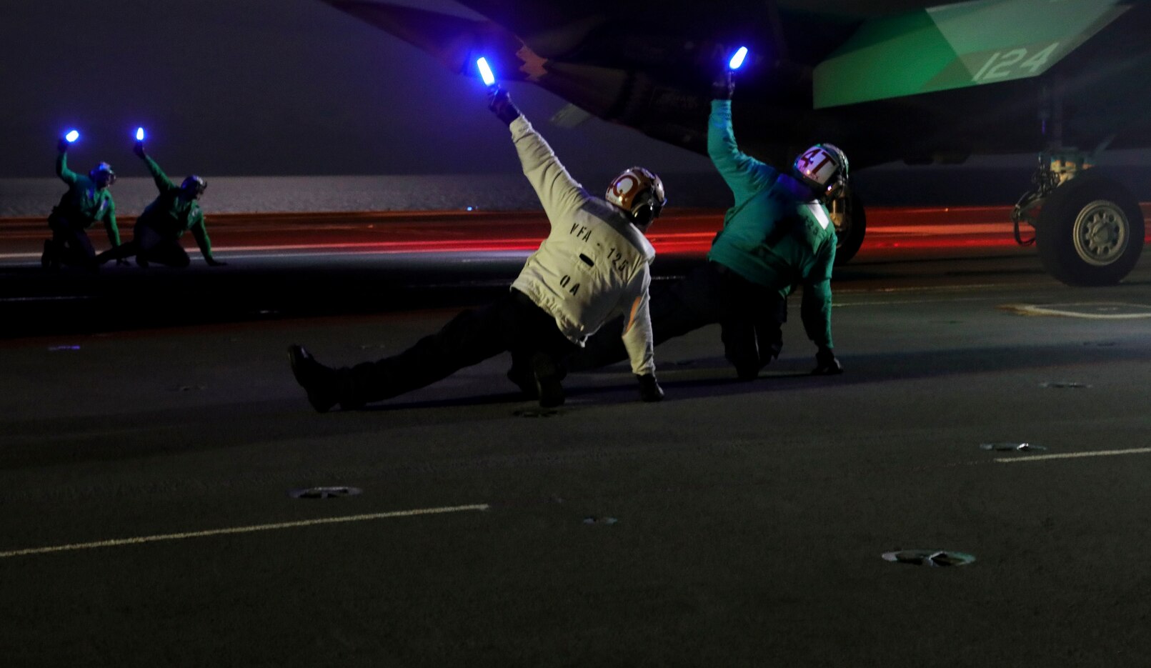 170904-N-CT127-607 ATLANTIC OCEAN (Sept. 4, 2017) Sailors prepare an F-35C Lightning II assigned to the Grim Reapers of Strike Fighter Squadron (VFA 101) for launch on the flight deck of the Nimitz-class aircraft carrier USS Abraham Lincoln (CVN 72). Abraham Lincoln is underway conducting training after successful completion of carrier incremental availability. (U.S. Navy photo by Mass Communication Specialist 1st Class Josue Escobosa/Released)