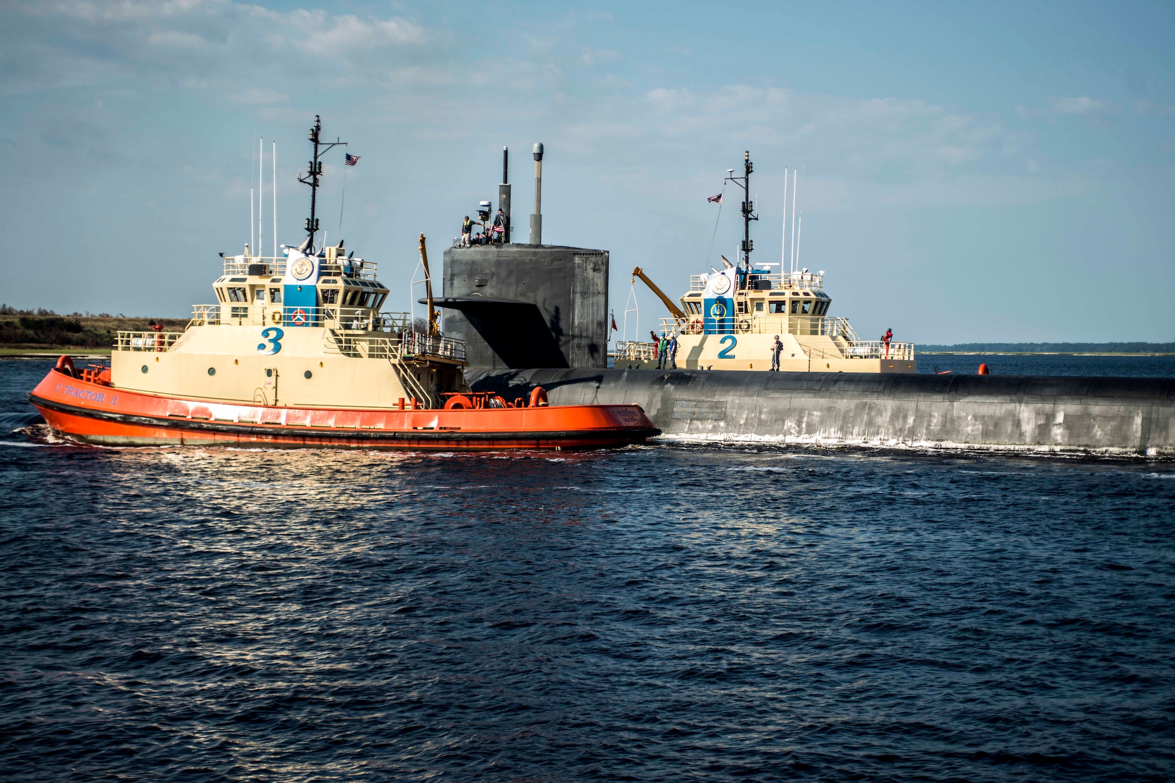 170919-N-IC565-010 KINGS BAY, Ga. (Sept 19, 2017) The Ohio-class ballistic-missile submarine USS Wyoming (SSBN 742) returns to Naval Submarine Base Kings Bay. Wyoming was commissioned in1996 and is the third U.S. Navy ship to be named in honor of the state. (U.S. Navy photo by Mass Communication Specialist 2nd Class Bradley J. Gee/Released)