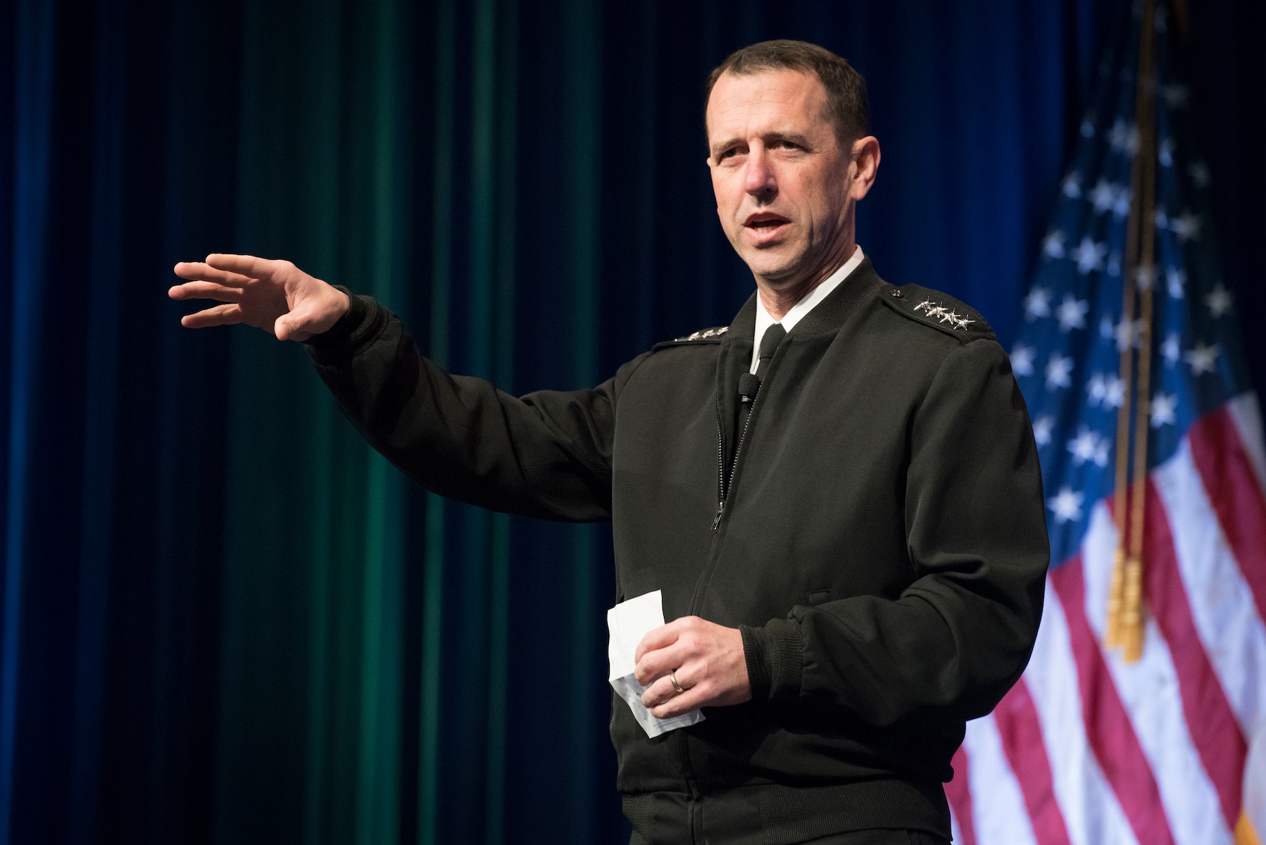 160219-N-AT895-280 SAN DIEGO (Feb. 19, 2016) Chief of Naval Operations (CNO) Adm. John Richardson delivers remarks during the Armed Forces Communication and Electronics Association-U.S. Naval Institute (AFCEA/USNI) West 2016. (U.S. Navy photo by Mass Communication Specialist 1st Class Nathan Laird/Released)