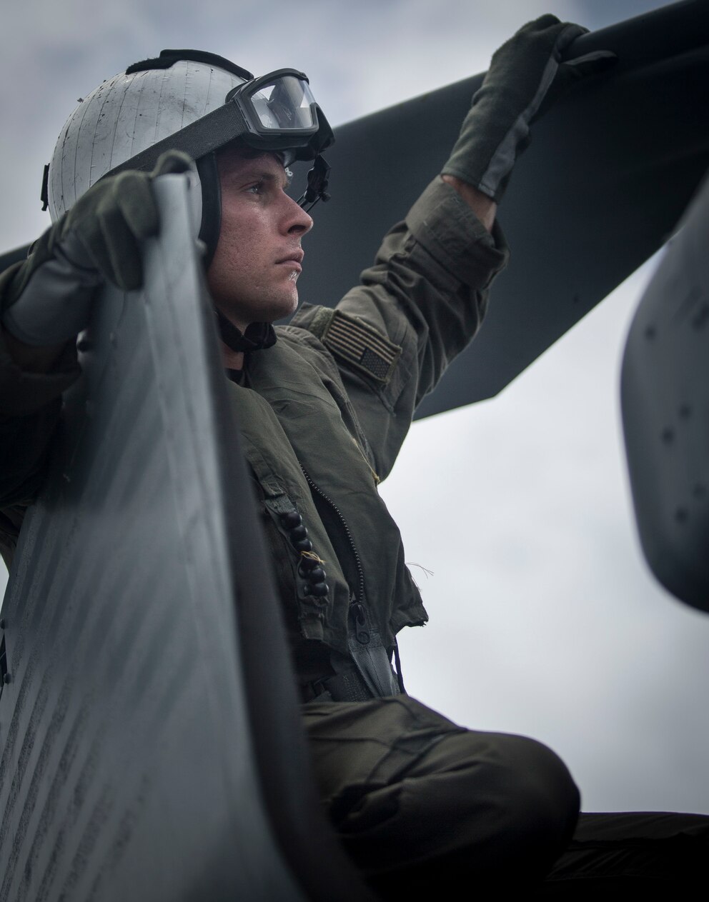 160604-M-TM809-218 PACIFIC OCEAN (June 4, 2016) Naval Aircrewmen (Helicopter) 2nd Class Thomas Williams, a native of Sacramento, California, conducts preflight checks of an MH-60S Sea Hawk helicopter assigned to the Blackjacks of Helicopter Sea Combat Squadron (HSC) 21 during an alert 60 medical evacuation drill on the flight deck of hospital ship USNS Mercy (T-AH 19). During an alert 60 medical evacuation drill, essential flight deck personnel have 60 minutes to prepare the aircraft to launch. Deployed in support of Pacific Partnership 2016, Mercy is scheduled to visit Timor Leste, the Republic of the Philippines, Vietnam, Malaysia and Indonesia. Medical, engineering and various other personnel embarked aboard Mercy will work side-by-side with partner nation counterparts, exchanging ideas, building best practices and relationships to ensure preparedness should disaster strike. (U.S. Marine Corps photo by Cpl. Brittney Vella/Released)