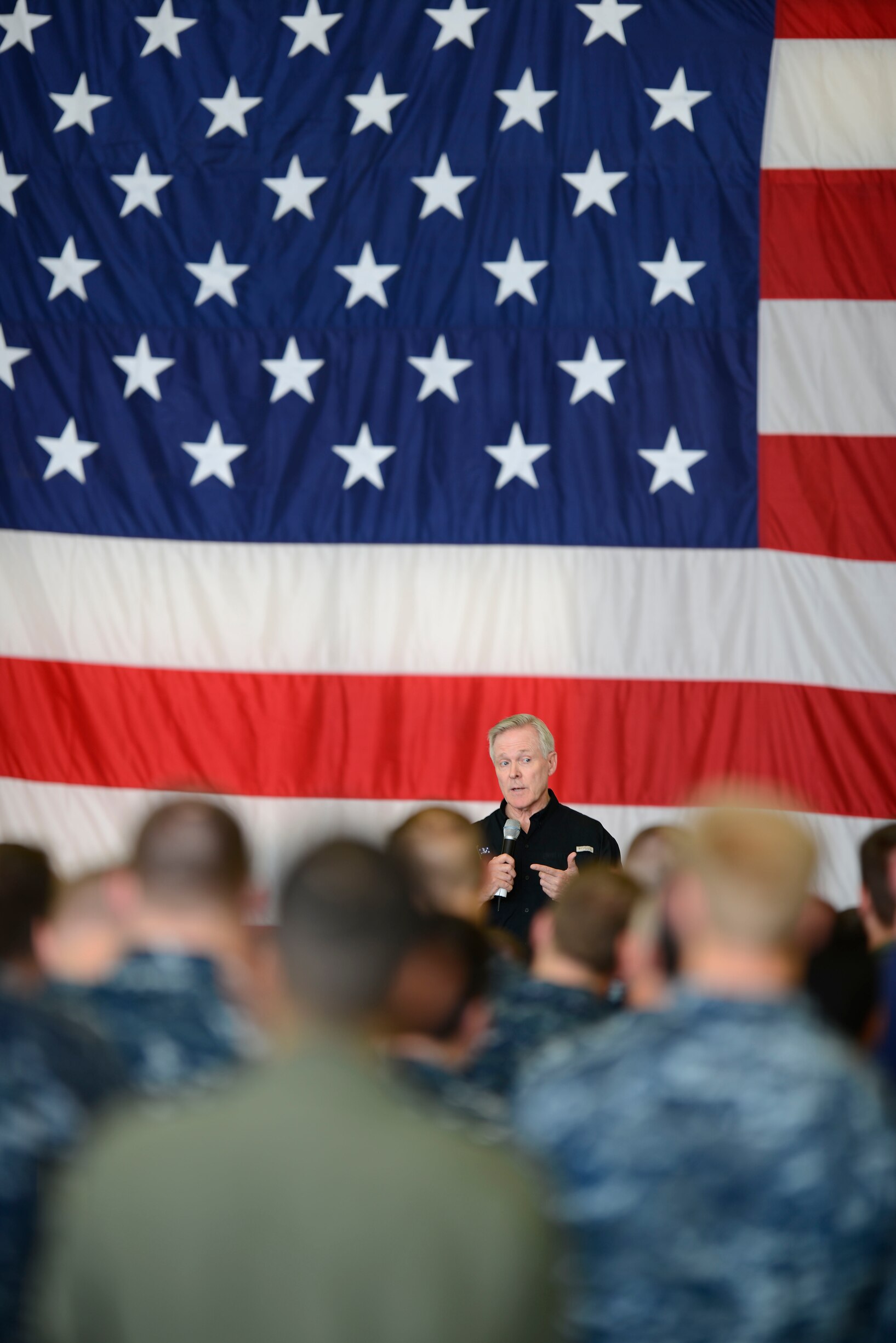 160616-N-SS492-076 NAPLES, Italy (June 16, 2016) Secretary of the Navy (SECNAV) Ray Mabus provides remarks during an all-hands call on Naval Support Activity Naples June 16, 2016. Mabus officiated an awards ceremony and reenlistments for select Sailors, followed by an all-hands call. Mabus is visiting Great Green Fleet operations in Europe, the highlight of which will include an Italian oiler refueling USS Mason (DDG 87) with advanced alternative fuel. The Great Green Fleet initiative is designed to make Sailors and Marines better warfighters, able to go further, stay longer and deliver more firepower. (U.S. Navy photo by Chief Mass Communication Specialist Brian P. Biller/Released)
