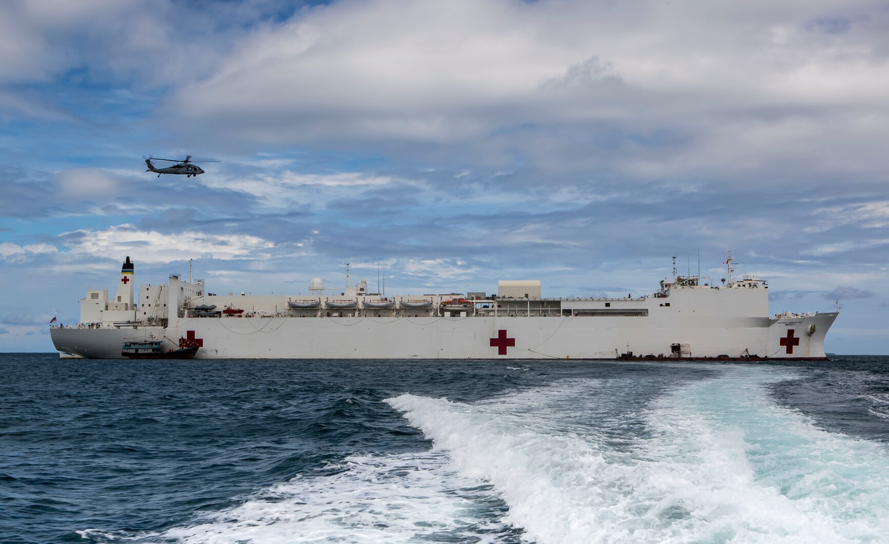 160820-N-CV785-002 PADANG, Indonesia (Aug. 20, 2016) Hospital ship USNS Mercy (T-AH 19) sits anchored off the coast of Padang, during Pacific Partnership 2016's fifth and final mission stop. This is the fifth time Pacific Partnership has visited Indonesia. Partner nations are working side-by-side with local organizations during disaster response training, civil engineering projects, Women, Peace, and Security seminars, medical subject matter expert exchanges and a live field training exercise aimed at improving the capacity of local government, civilian agencies and partner militaries to collectively respond in crisis. (Royal Australian Air Force photo by Air Force Imagery Specialist CPL David Cotton/ Released)