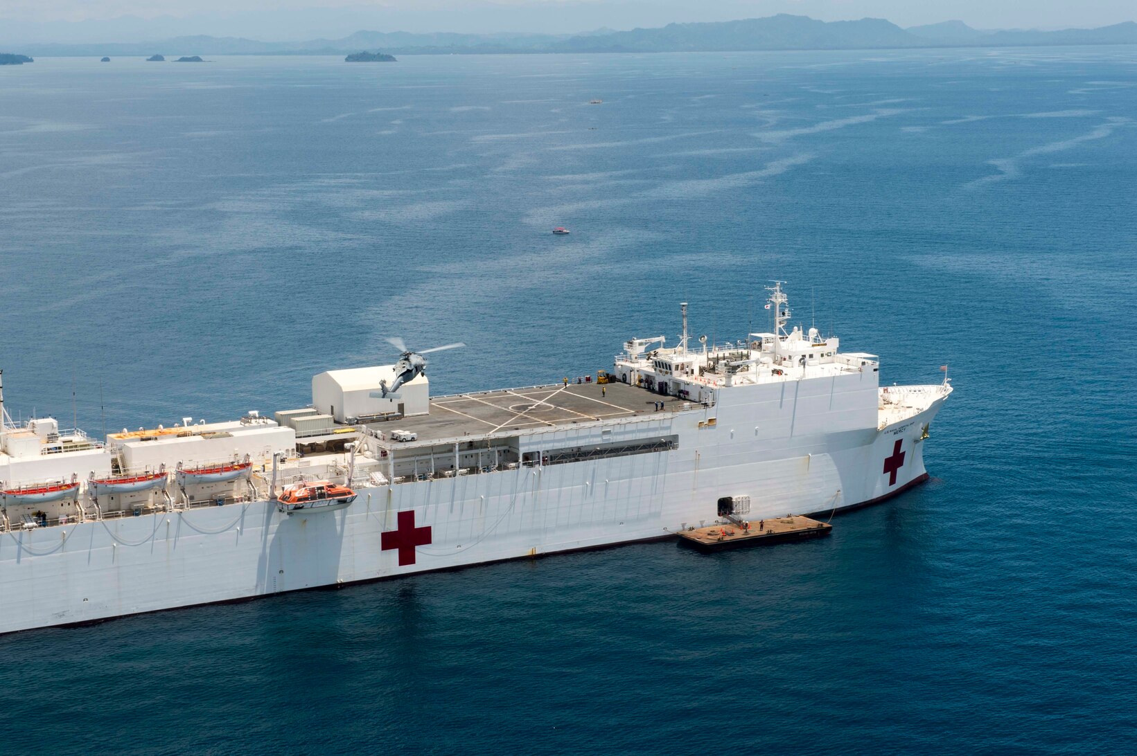 150721-N-UQ938-115 ROXAS CITY, Philippines (July 21, 2015) An MH-60S Sea Hawk helicopter from Helicopter Sea Combat Squadron 21 lands on the hospital ship USNS Mercy (T-AH 19) for refueling. Mercy is in the Philippines for its third mission port of Pacific Partnership 2015. Pacific Partnership is in its 10th iteration and is the largest annual multilateral humanitarian assistance and disaster relief preparedness mission conducted in the Indo-Asia-Pacific region. While training for crisis conditions, Pacific Partnership missions to date have provided real world medical care to approximately 270,000 patients and veterinary services to more than 38,000 animals. Critical infrastructure development has been supported in host nations during more than 180 engineering projects. (U.S. Navy photo by Mass Communication Specialist 1st Class Trevor Andersen/Released)