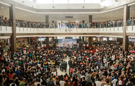 150726-N-TQ272-591 ROXAS CITY, Philippines (July 26, 2015) The Pacific Fleet Band, embarked aboard the Military Sealift Command hospital ship USNS Mercy (T-AH 19), performs at Robinsons Mall during Pacific Partnership 2015. Mercy is in the Philippines for its third mission port of PP15. Pacific Partnership is in its tenth iteration and is the largest annual multilateral humanitarian assistance and disaster relief preparedness mission conducted in the Indo-Asia-Pacific region. (U.S. Navy photo by Mass Communication Specialist 2nd Class Mark El-Rayes/Released)