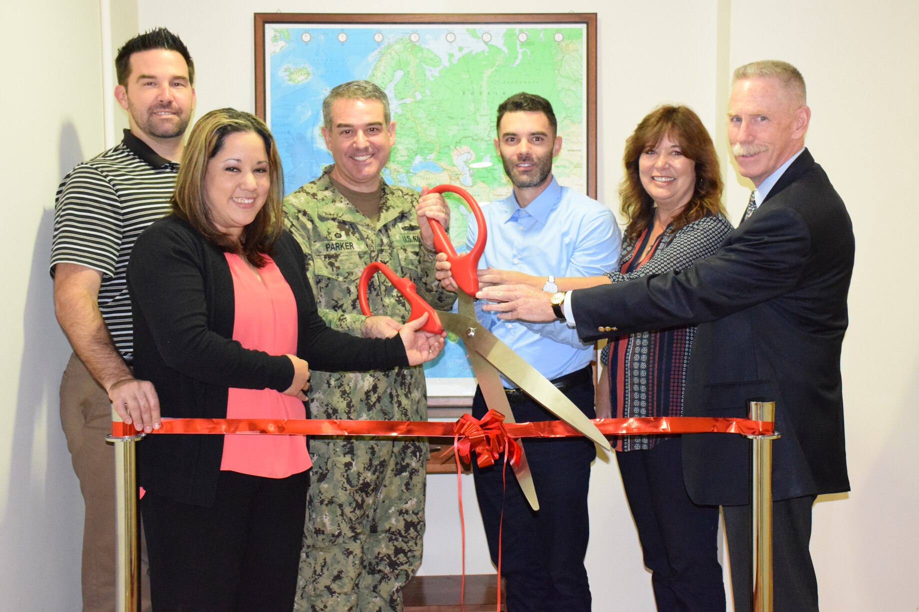 151209-N-XT613-003 SIGONELLA, Sicily (December 9, 2015) NAVSUP FLC Sigonella personnel participate in a ribbon cutting ceremony marking the establishment of the Expeditionary Contracting Support (ECS) Branch. The ECS Branch is responsible for contractually supporting Navy expeditionary activities within Europe and Africa (EURAF) area of responsibility for supplies and services under NAVSUP contracting authority. From left to right, Dustin Gilroy, contract specialist, Keely Pool, supervisory contract specialist, Capt. Chris Parker, commanding officer, Howard Girvin, contract specialist, Donita Workman, contract specialist, and Gerry Harms, executive director (U.S. Navy photo by Shannon Haney/Released)