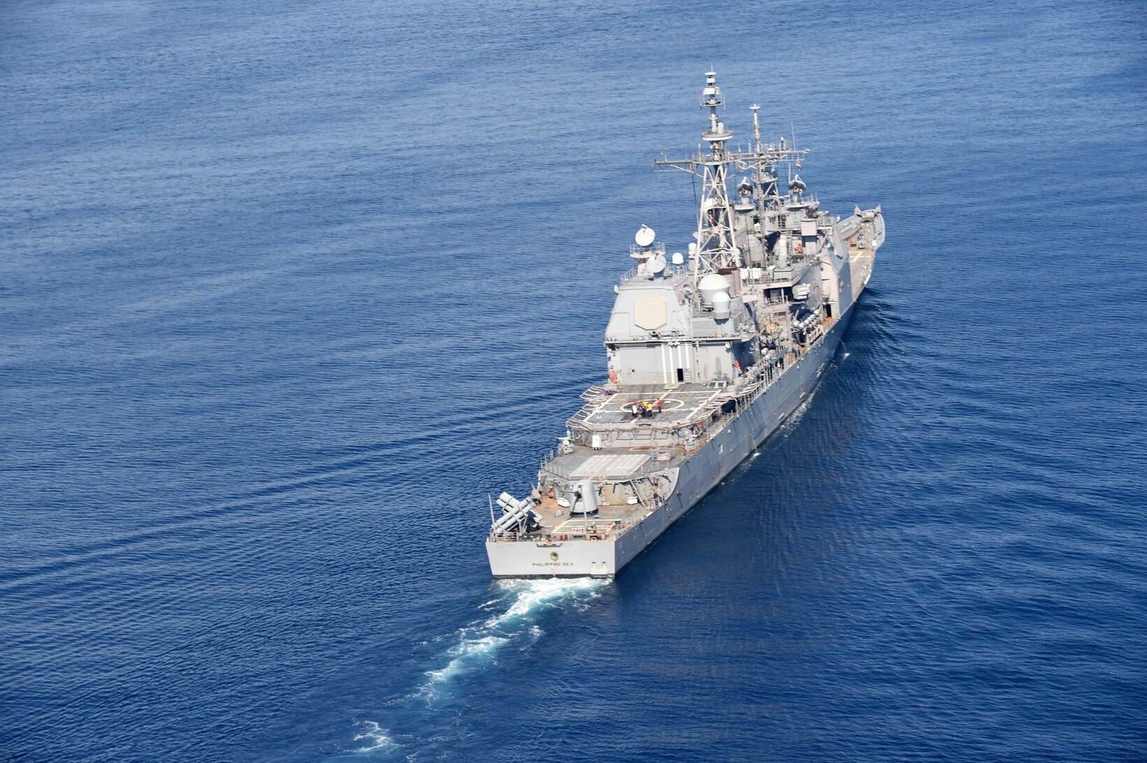 MEDITERRANEAN SEA (Aug. 26, 2020) The Ticonderoga-class guided-missile cruiser USS Philippine Sea (CG 58) transits the Mediterranean Sea, Aug. 26, 2020. Philippine Sea is currently deployed to the U.S. 6th Fleet area of operations in support of regional allies and partners and U.S. national security interests in Europe and Africa. (U.S. Navy photo by Mass Communication Specialist 2nd Class Indra Beaufort)