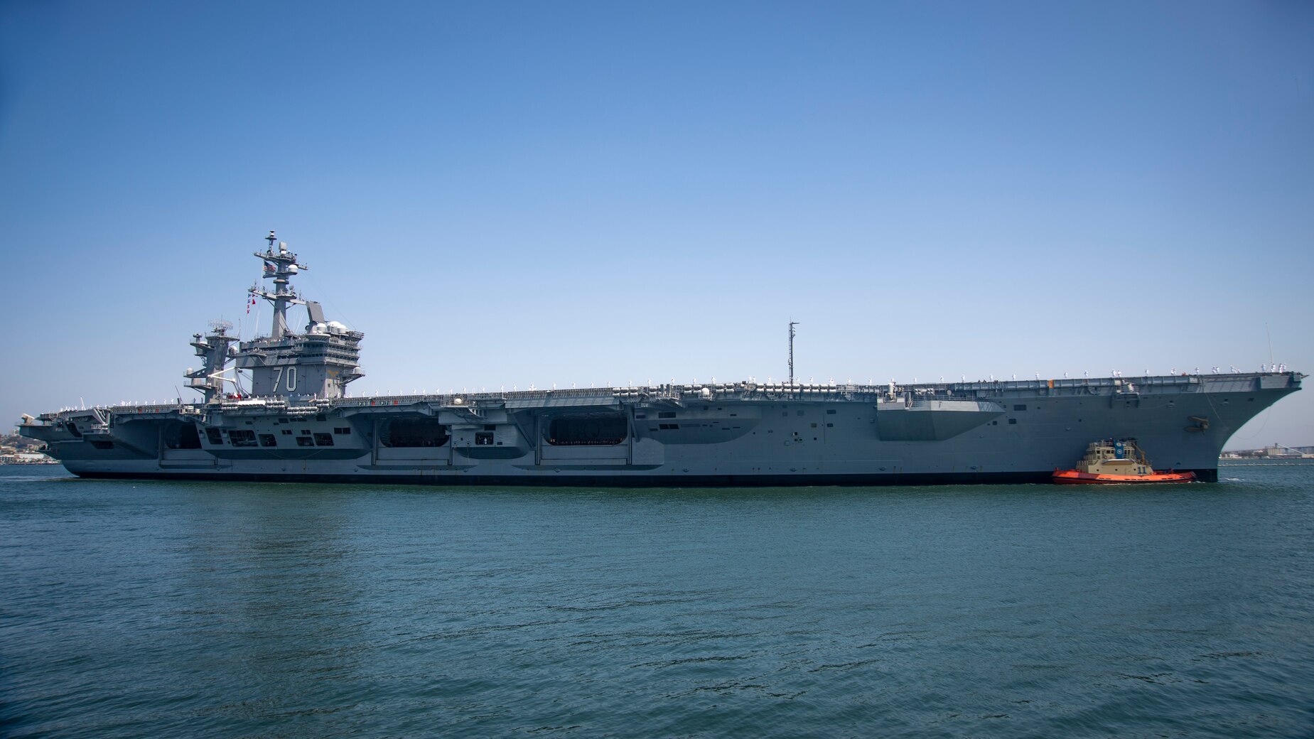 SAN DIEGO (Sept. 2, 2020) The aircraft carrier USS Carl Vinson (CVN 70) arrived in San Diego after conducting a homeport change from Bremerton, Washington. Carl Vinson recently completed a 17-month scheduled docking planned incremental availability (DPIA) and successful sea trials to test the recently upgraded ship’s systems. The DPIA included a system retrofit to accommodate Joint Strike Fighter mission capabilities to support F-35C Lightning II Joint Strike Fighter squadrons. (U.S. Navy photo by Mass Communication Specialist 3rd Class Haydn N. Smith)