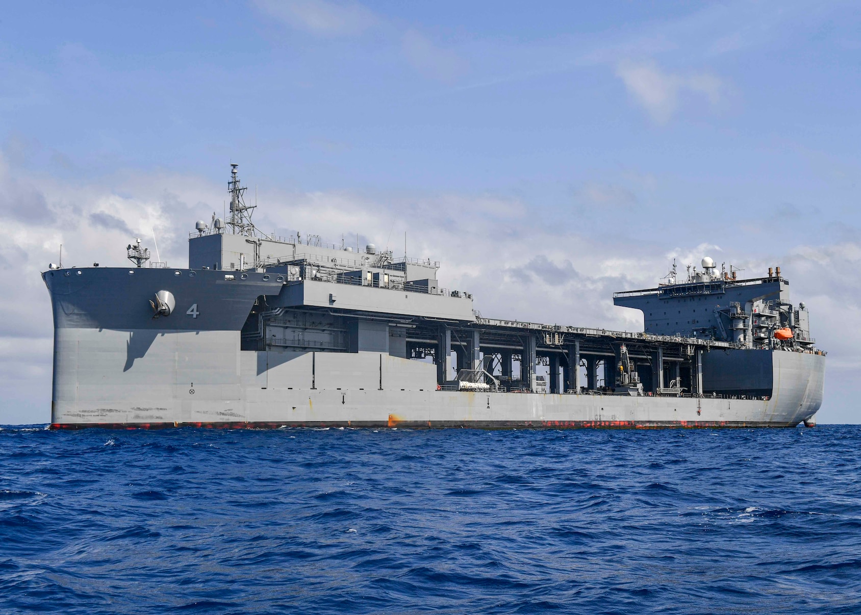 INDIAN OCEAN (Feb. 7, 2021) The Expeditionary Sea Base USS Hershel �Woody� Williams (ESB 4) steams along in the Indian Ocean, Feb. 7, 2021. Hershel "Woody" Williams is operating in U.S. 6th Fleet to conduct interoperability training and building strategic partnerships with their African partners and Allied nations. (U.S. Navy photo by Mass Communication Specialist 2nd Class Eric Coffer)
