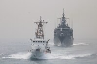 ARABIAN GULF (Feb. 25, 2021) The U.S. Coast Guard cutter USCGC Maui (WPB 1304) and the Greek navy guided-missile frigate HS Hydra (F452) participate in a passing exercise in the Arabian Gulf, Feb. 25, 2021. U.S. Coast Guard Patrol Forces Southwest Asia (PATFORSWA) is comprised of six 110-foot cutters, the Maritime Engagement Team, shore-side support personnel, and is the U.S. Coast Guard's largest unit outside of the U.S., playing a key role in supporting Navy security cooperation, maritime security, and maritime infrastructure protection operations in the U.S. 5th Fleet area of operations. (U.S. Coast Guard photo)