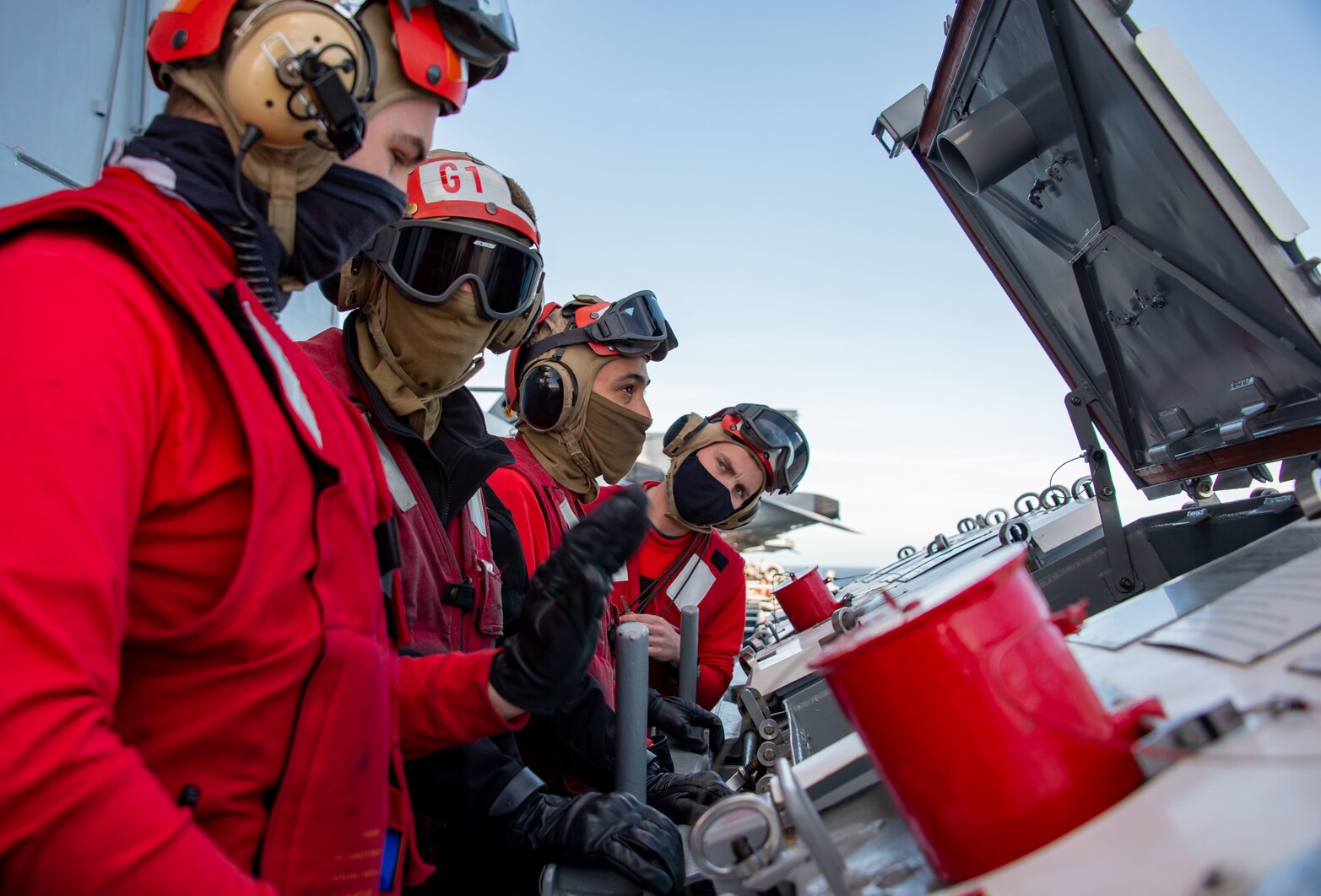 PACIFIC OCEAN (Feb. 3, 2021) Aviation ordnancemen assigned to the aircraft carrier USS Carl Vinson (CVN 70) inventory jettison lockers aboard the ship. Carl Vinson is currently underway in the Pacific Ocean conducting routine operations in the U.S. 3rd Fleet area of operations. (U.S. Navy photo by Mass Communication Specialist 3rd Class Aaron T. Smith)