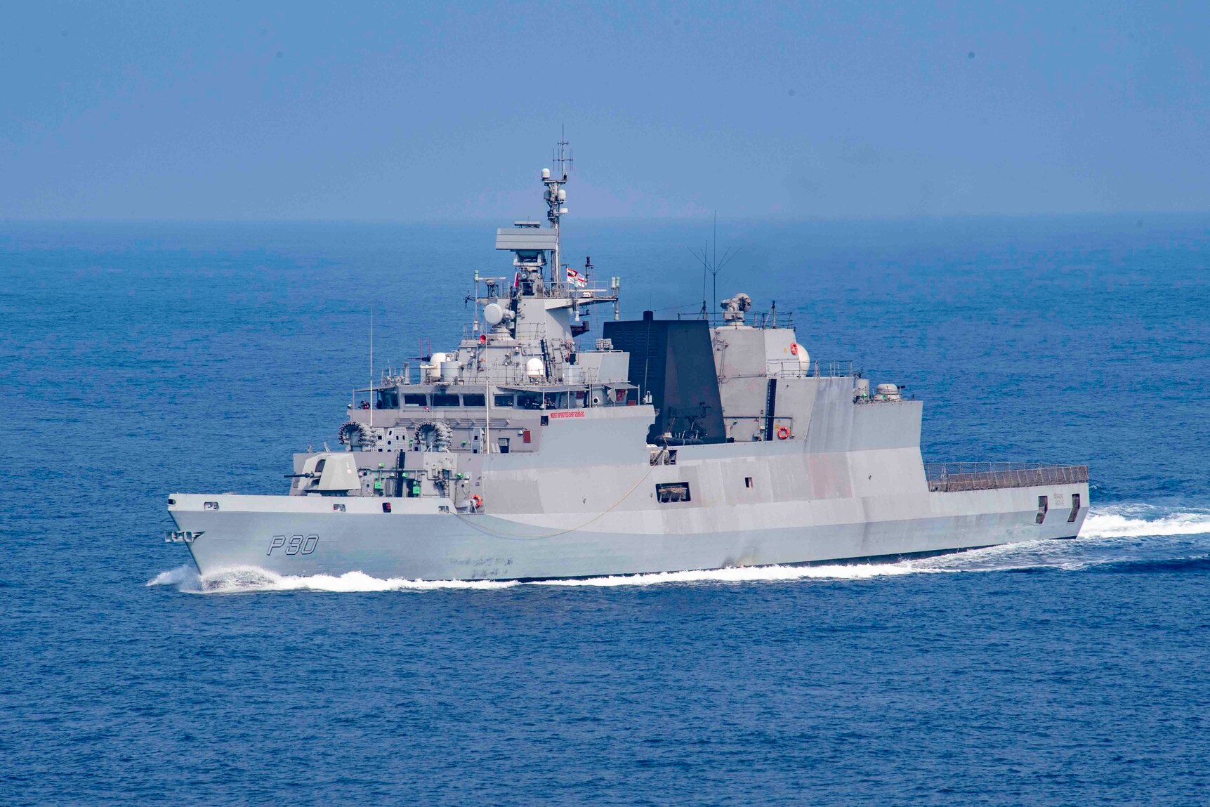 INDIAN OCEAN (April 6, 2021) The amphibious transport dock ship USS Somerset (LPD 25) conducts formation maneuvers with the Indian navy IN Kiltan (P 30) during La Perouse 2021. La Perouse consists of naval assets from Australia, France, India, Japan and the United States. La Perouse is an exercise conducted during the annual French Navy midshipman deployment called Mission Jeanne d'Arc. The exercise is designed to conduct training, enhance cooperation in maritime surveillance, maritime interdiction operations, and air operations. As the U.S. Navy's largest forward-deployed fleet, 7th Fleet employs 50-70 ships and submarines across the Western Pacific and Indian oceans. U.S. 7th Fleet routinely operates and interacts with 35 maritime nations while conducting missions to preserve and protect a free and open Indo-Pacific Region. (U.S. Navy photo by Mass Communications Specialist 2nd Class Heath Zeigler)