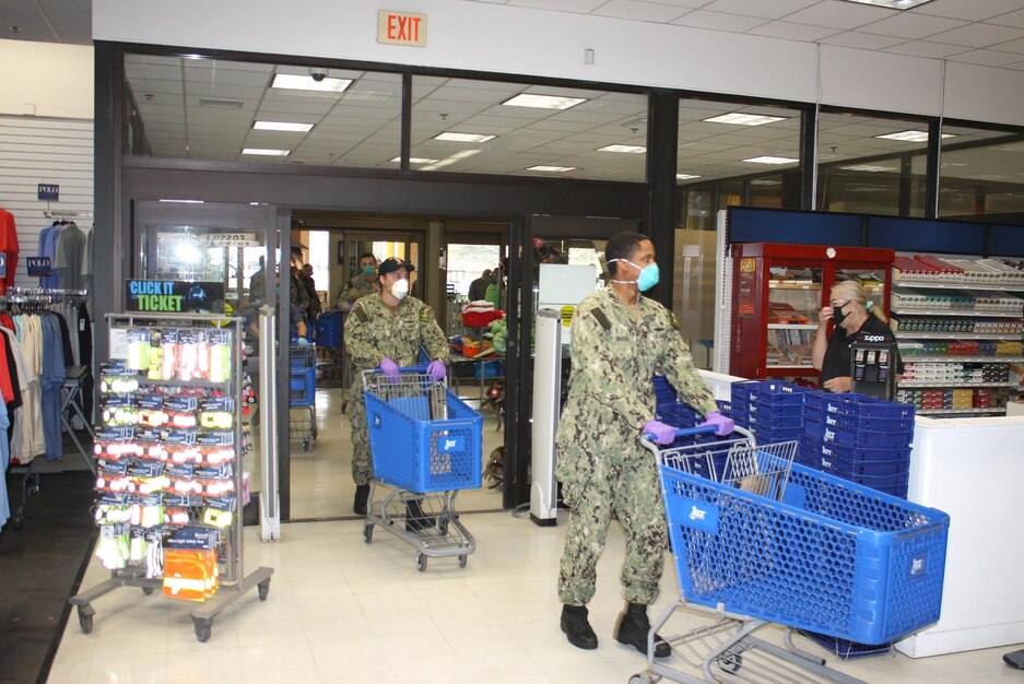 GUANTANAMO BAY, Cuba (May 2, 2021) Navy Exchange (NEX) Guantanamo Bay, Cuba, opens its store early so Sailors assigned to the Freedom-variant littoral combat ship USS Sioux City (LCS 11) could safely shop. The NEX also set up a pop-up souvenir store for the Sailors to shop. The Navy Exchange Service Command (NEXCOM) is comprised of 14,000 personnel worldwide facilitating six business lines, NEX retail stores, the Navy Lodge Program, Telecommunications Program, Navy Clothing and Textile Research Facility, Ships Store Program and the Uniform Program Management Office. (U.S. Navy photo)