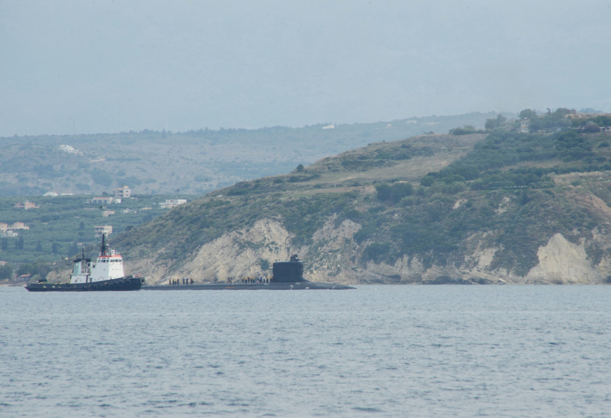 SOUDA BAY, Greece (May 30, 2021) The Virginia-class attack submarine USS New Mexico (SSN 779) makes a brief stop for fuel and supplies in Souda Bay, Greece, on May 30, 2021. Naval Support Activity Souda Bay is an operational ashore base that enables U.S., allied, and partner nation forces to be where they are needed when they are needed to ensure security and stability in Europe, Africa, and Southwest Asia. (U.S. Navy photo by Mass Communication Specialist 2nd Class Kelly M. Agee)