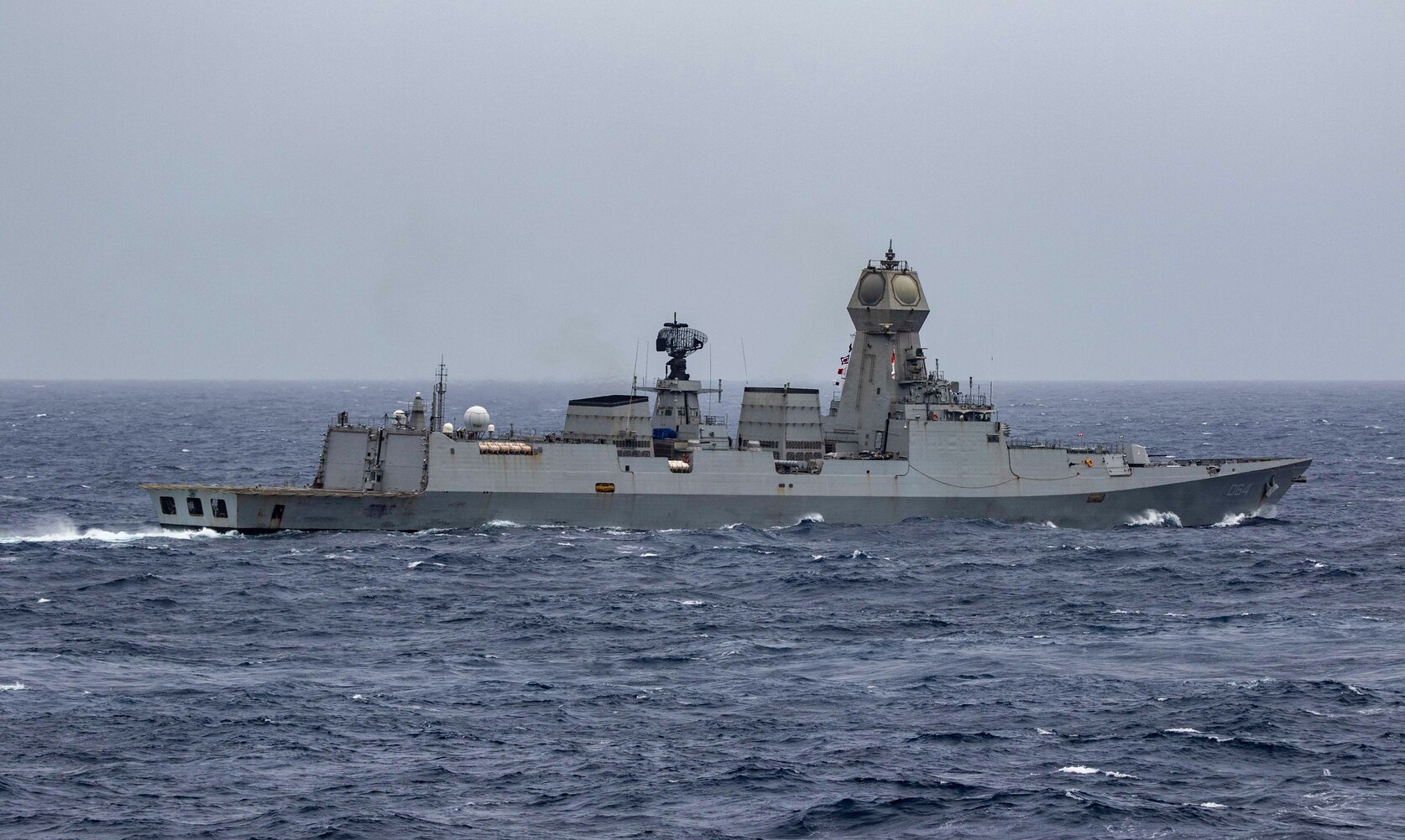 INDIAN OCEAN (June 24, 2021) The Indian navy Kolkata-class stealth guided-missile destroyer INS Kochi (D 64), photographed from the Ticonderoga-class guided-missile cruiser USS Shiloh (CG 67), transits during a bi-lateral exercise with ships and aircraft from the Ronald Reagan Carrier Strike Group (CSG 5). Shiloh is assigned to Commander, Task Force 70/Carrier Strike Group 5 conducting underway operations in support of a free and open Indo-Pacific. (U.S. Navy Photo by Mass Communication Specialist 1st Class Rawad Madanat)
